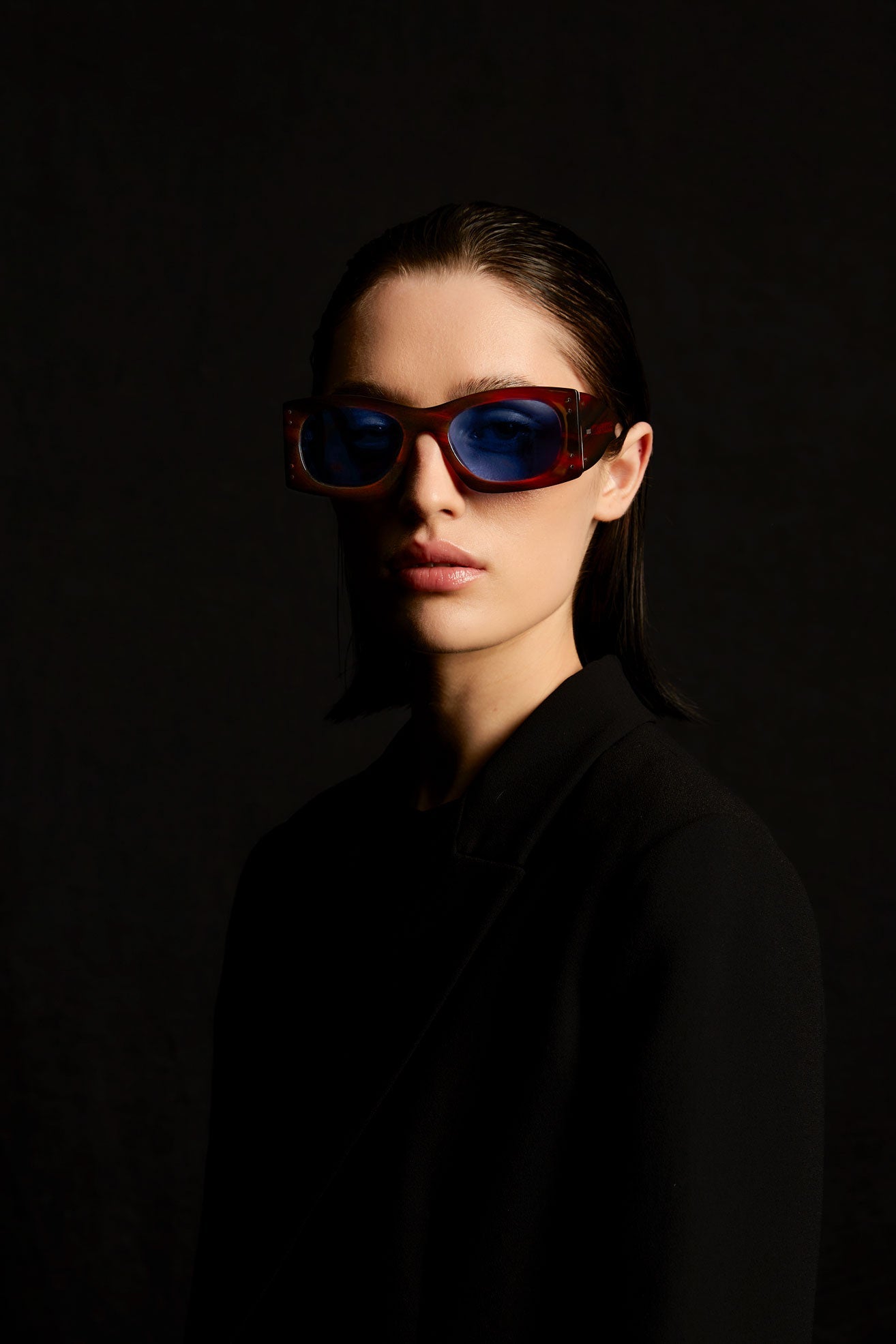 Creada para la exclusiva marca italoamericana Ottomila, 4 Cerniere es una pieza de gafas de vanguardia que eleva la simplicidad atemporal a un estilo contemporáneo icónico. 4 Cerniere significa 4 bisagras en italiano, esta característica única refuerza la estructura y permite una alineación perfecta entre las patillas y el frente de las gafas. El modelo cuenta con lentes anchas y cuadradas y bordes de acetato gruesos con puntas de patillas geométricas, concebidas como un cruce entre el glamour de los años 50 y la masculinidad atrevida. La robusta construcción del modelo se ha tallado en el interior de la montura, dando como resultado una pieza de alta gama. Esta versión se presenta en un clásico acetato habano a rayas y con lentes de color azul intenso.