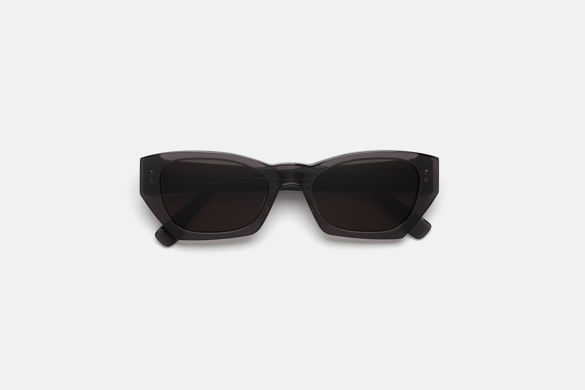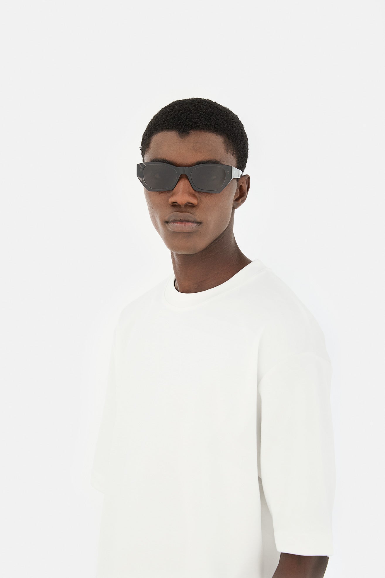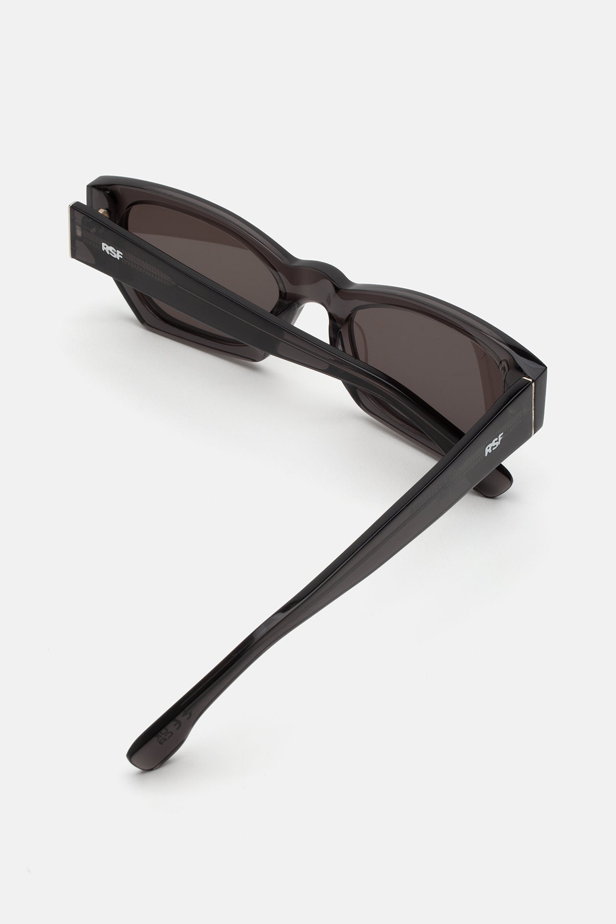 Acetato de alta calidad en acetato negro licorice translúcido. Lentes negras tono sobre tono con base 2. Gafas de alta gama diseñadas en Milán, Italia.