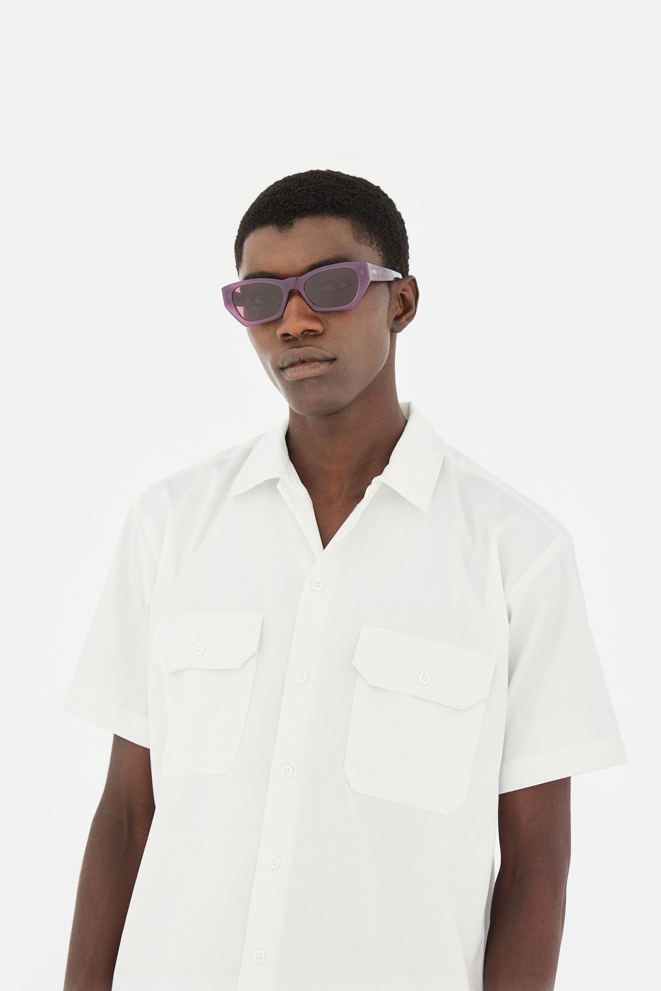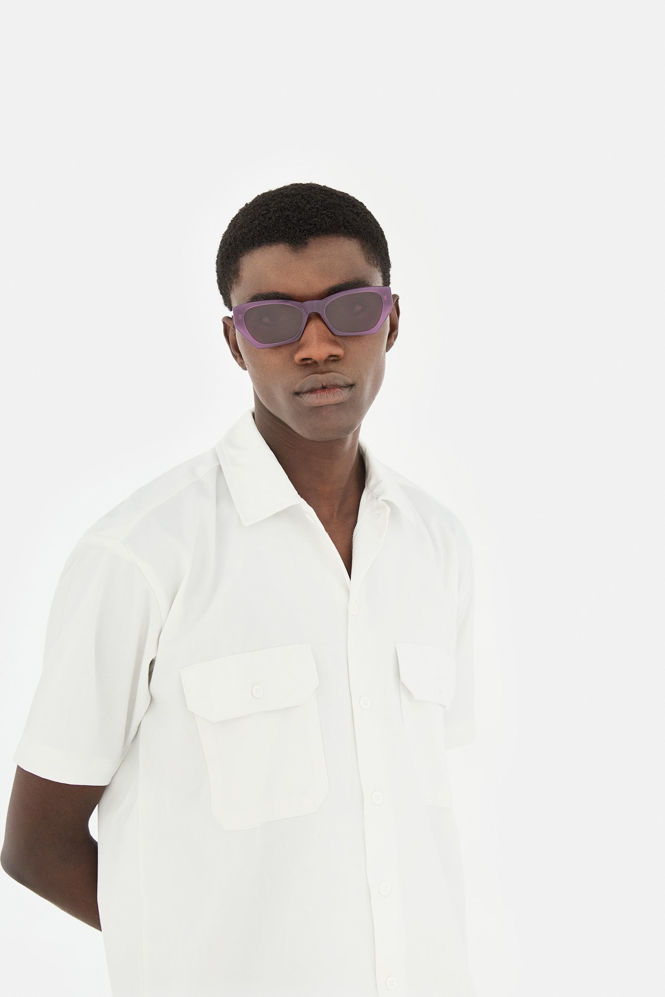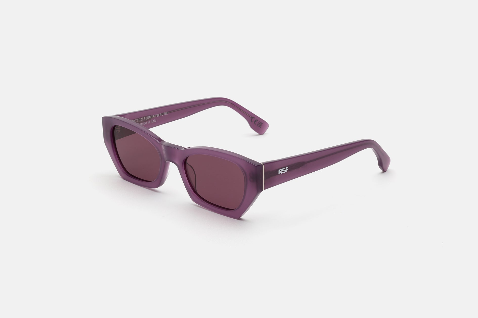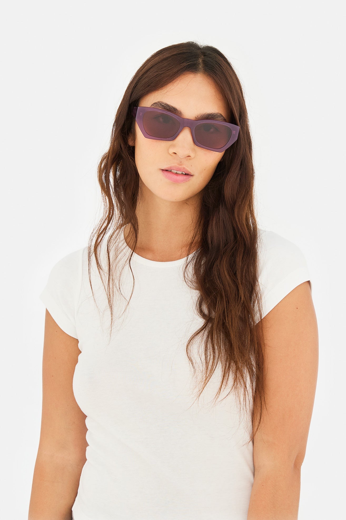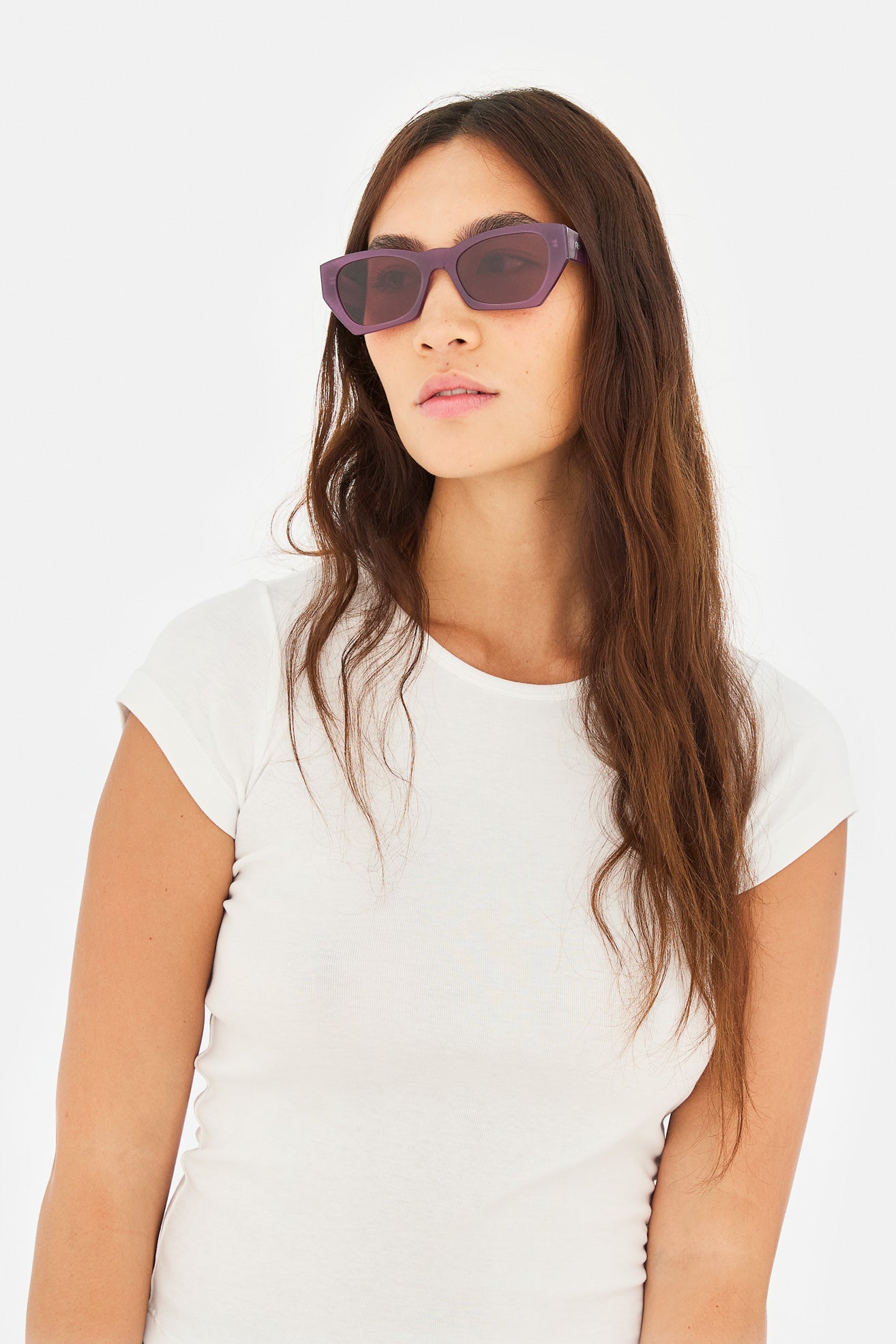 Acetato de alta calidad en un jugoso color morado. Lentes moradas tono sobre tono con base 2. Gafas de alta gama diseñadas en Milán, Italia.