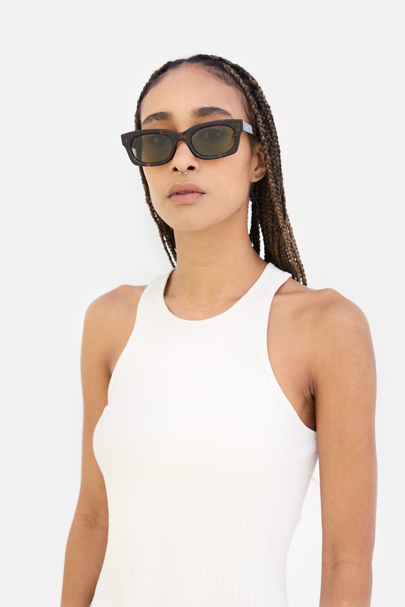 Ambos, una silueta ajustada, elegante pero divertida, es un clásico moderno. Diseñado como una versión moderna de esa actitud cotidiana única de los años 50. Ambos, con una forma relajada pero decidida, presentan bordes suaves y redondeados y lentes ovaladas con detalles cuadrados nítidos. Su resistente acetato ha sido cincelado para brindar una sensación pulida y con curvas, combinado con patillas rectas ultraelegantes. Esta versión del Ambos viene en un Havana 3627 oscuro con lentes verde botella.