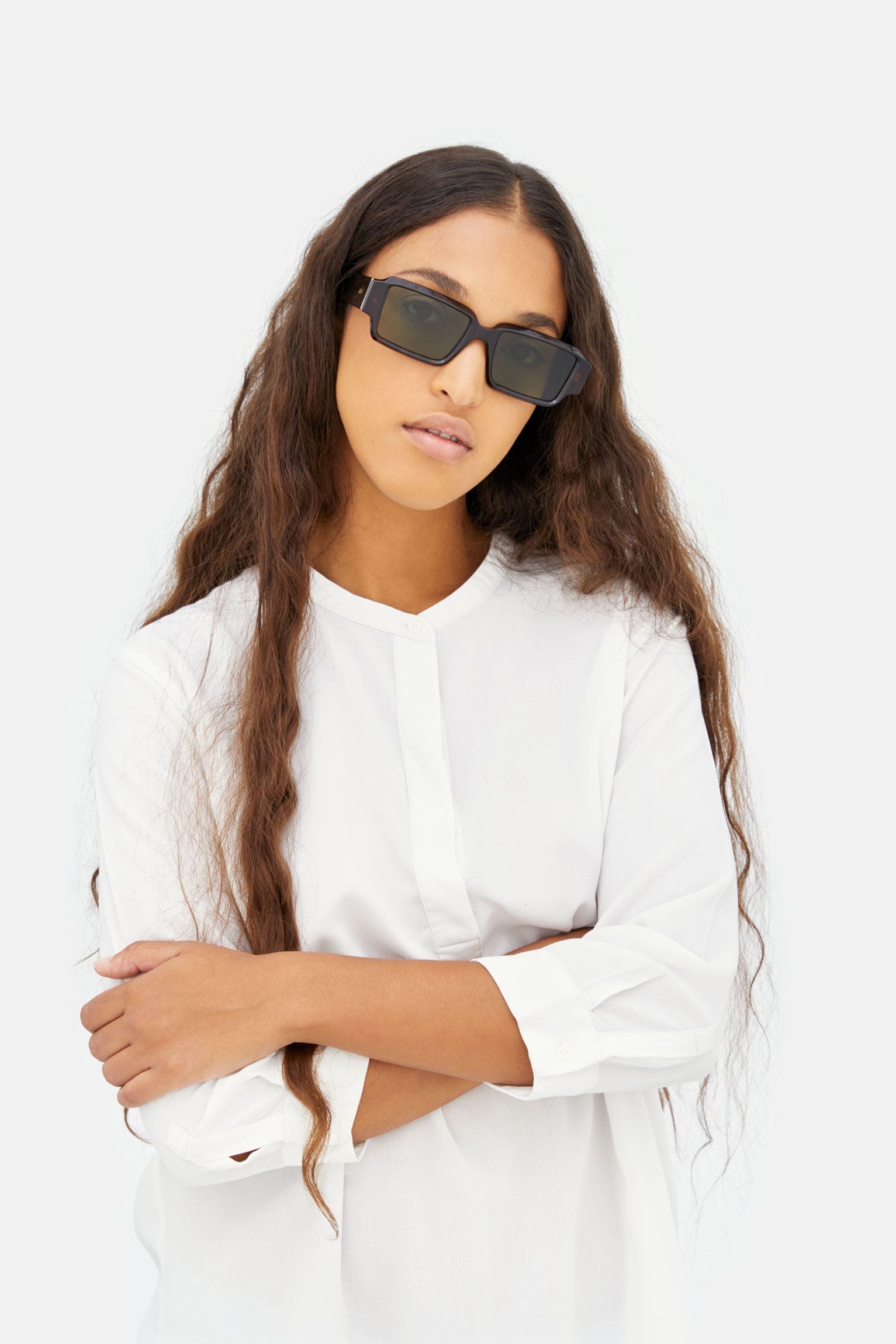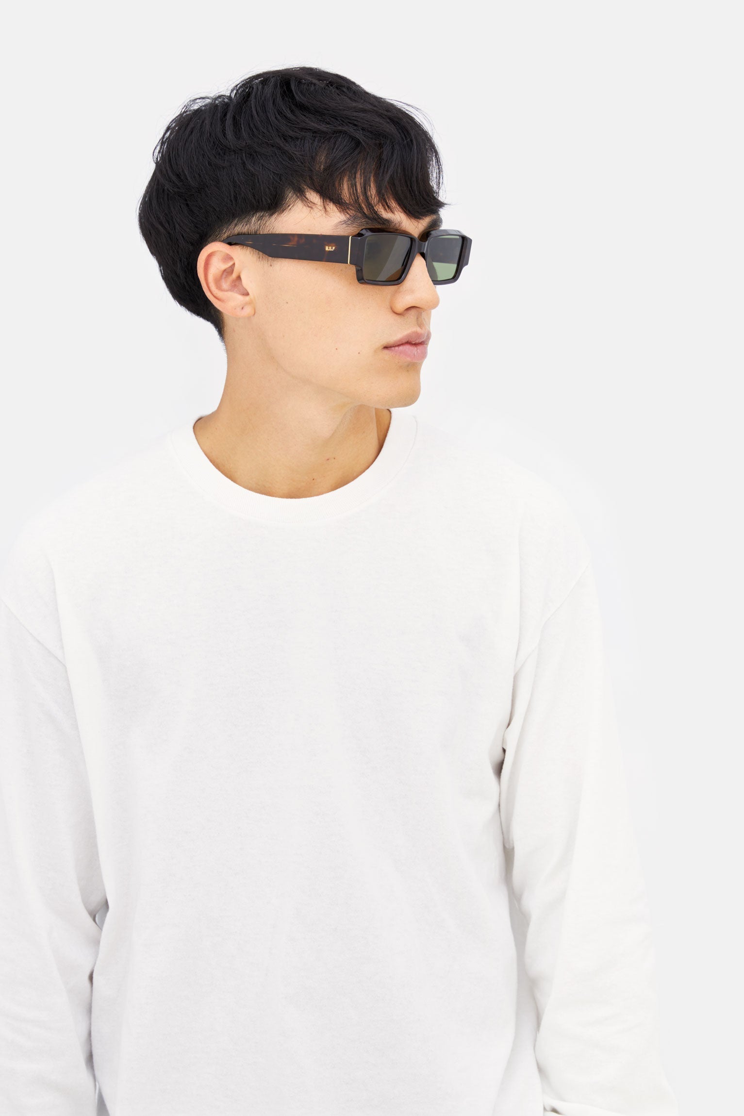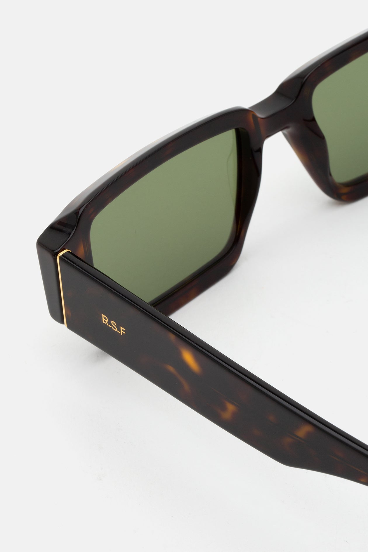 Piezas icónicas de gafas, reinventadas para el estilo de vida urbano contemporáneo: una silueta de los años 70 ha sido rediseñada para crear Astro, una forma atrevida y lúdica. Astro es un marco cuadrado con sienes gruesas y un puente de nariz baja, caracterizado por los bordes esculpidos para formar un perfil arquitectónico inclinado distintivo. Excepcional acetato italiano en una Habana manchada 3627 y lentes de color verde botella hacen de este un exquisito diseño de alta gama.
