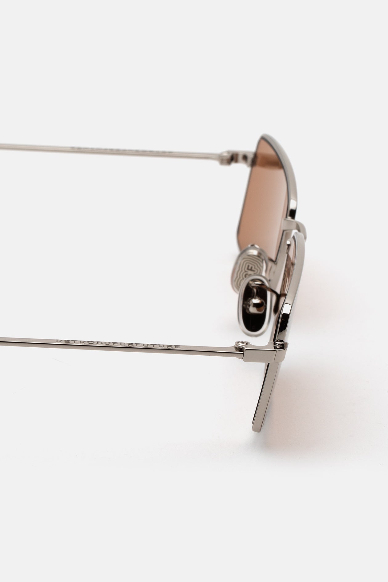 Chopper es un diseño de gafas de sol elegante y de conducción baja con una estructura y detalles de metal esencial de alta calidad. Su montura metálica personalizada de corte limpio en plata se combina con refinadas lentes minerales de cristal marrón de Barberini. Las almohadillas nasales ajustables diseñadas a medida y las elegantes patillas de acetato permiten un ajuste cómodo a medida. Hecho a mano en Italia.