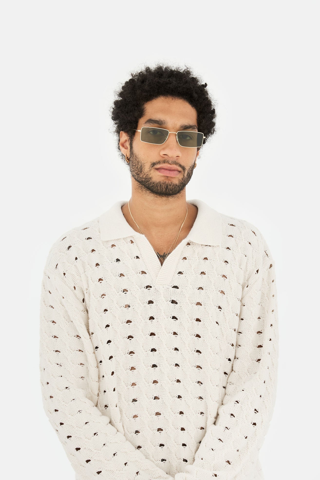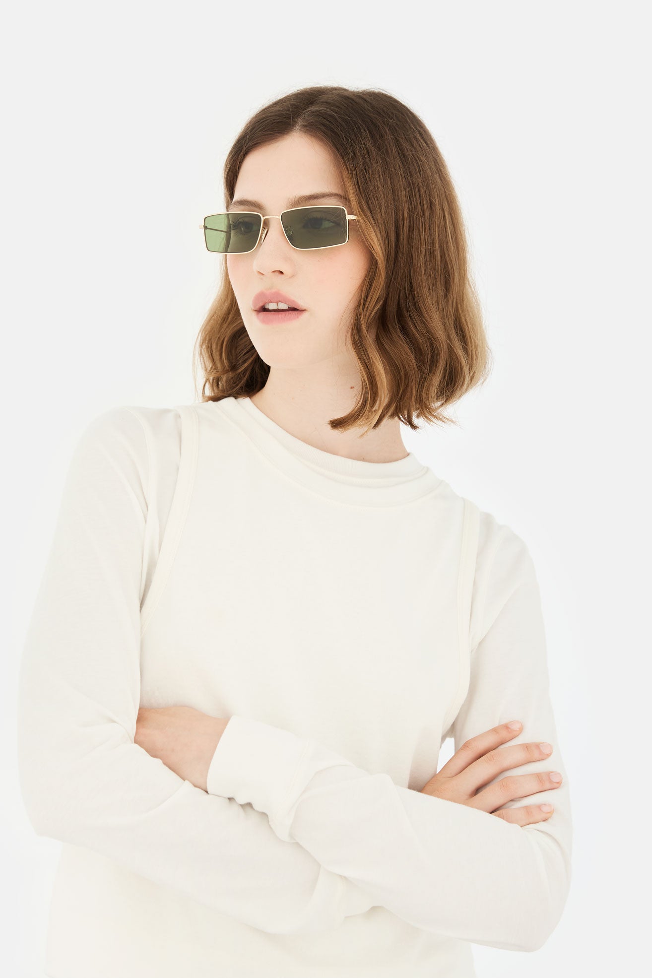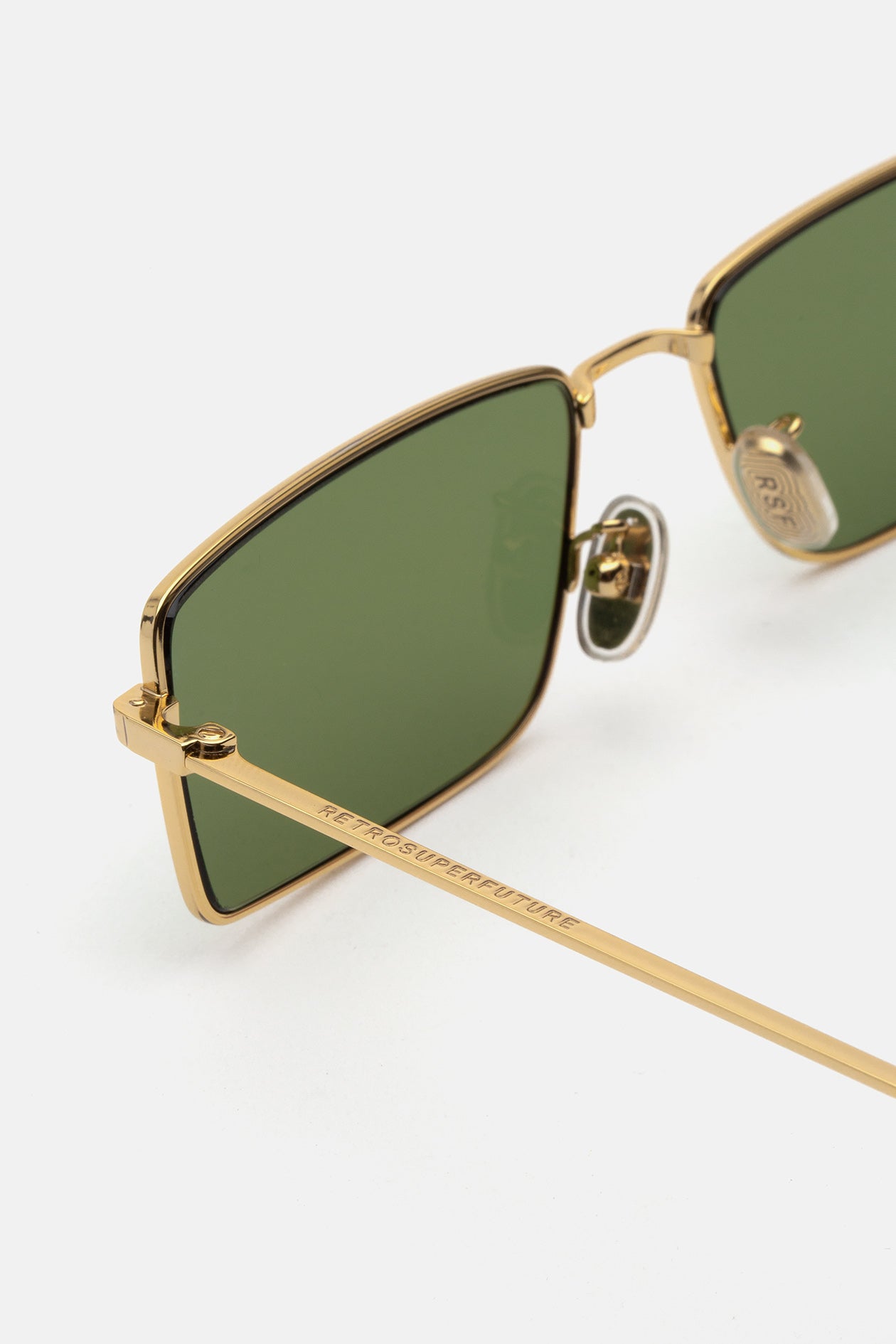 Chopper es una gafa de sol de perfil bajo y elegante con una montura metálica esencial de alta calidad y detalles de alta calidad. Su montura metálica personalizada de corte limpio en dorado se combina con las clásicas lentes minerales de cristal verde de Barberini. Las plaquetas nasales ajustables de diseño personalizado y las elegantes patillas de acetato permiten un ajuste cómodo y personalizado. Hechas a mano en Italia.