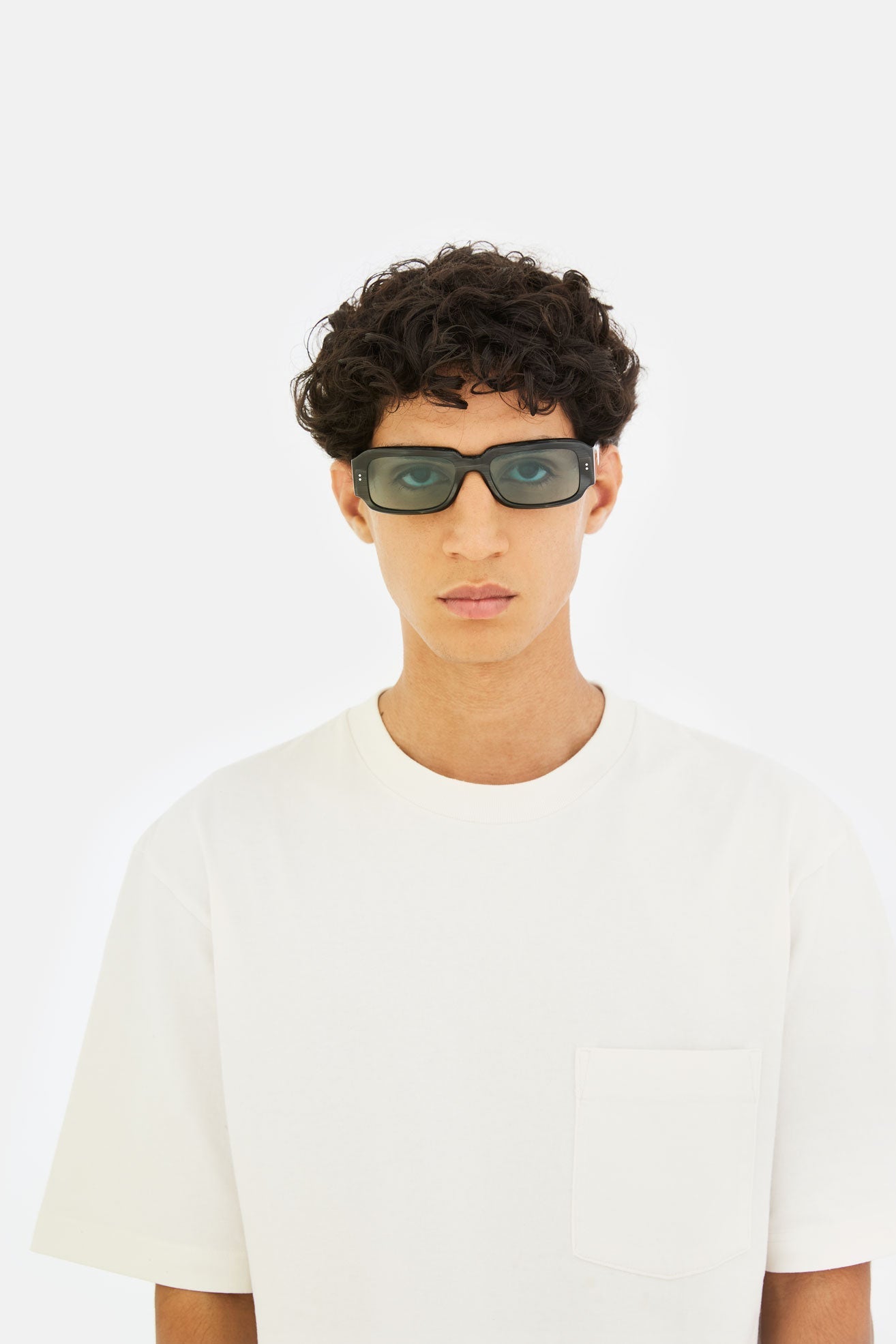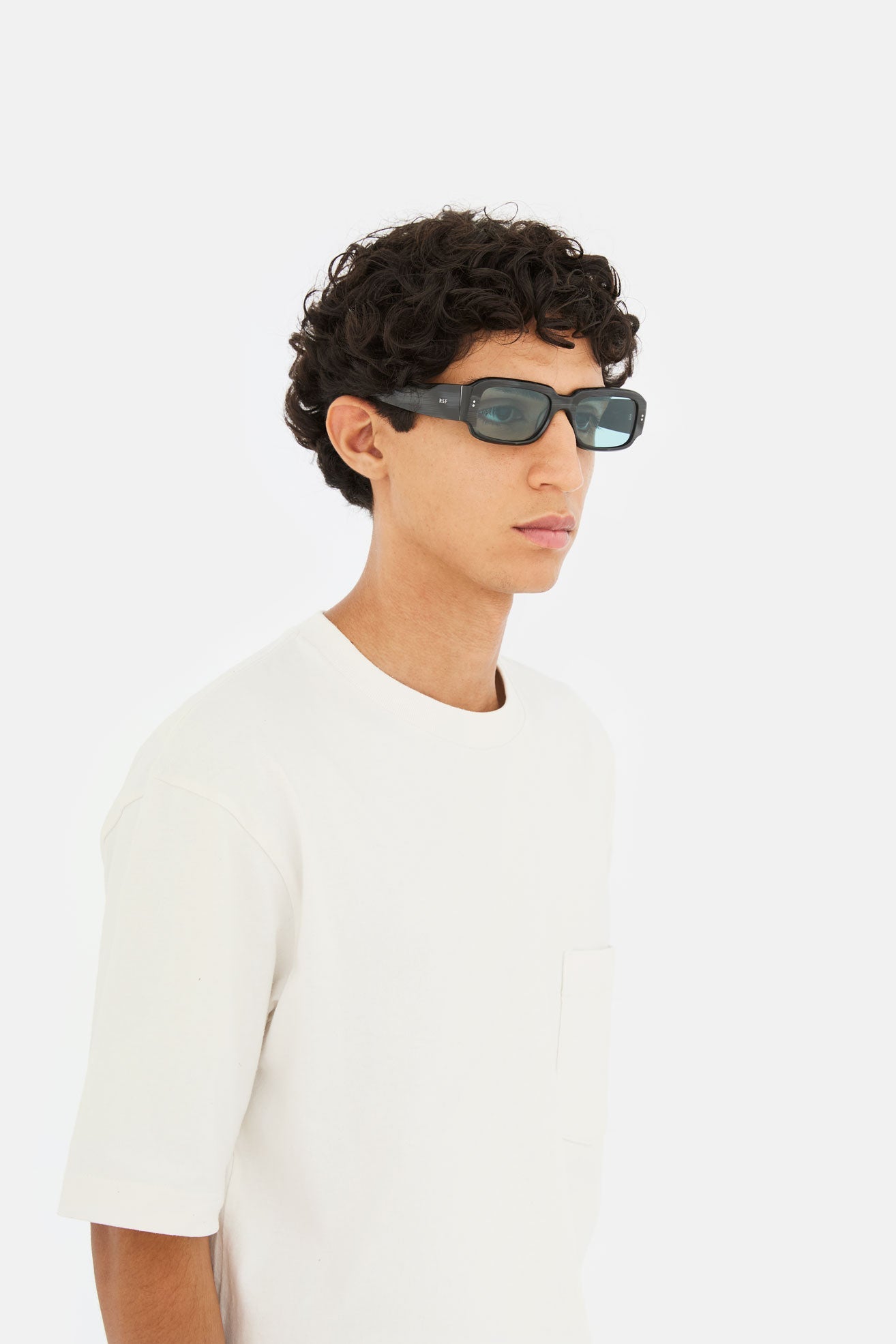 Suave pero vanguardista, redondeado pero cuadrado, Etrusco combina un diseño de inspiración retro con una actitud muy contemporánea y relajada. Sus lentes rectangulares anchas y bajas y sus patillas altas y resistentes están meticulosamente diseñadas para lograr superficies únicas, ultra suaves y lisas. Para esta versión del Etrusco, se utilizó un rico y único acetato negro estriado combinado con lentes azules. Hecho a mano en Italia.