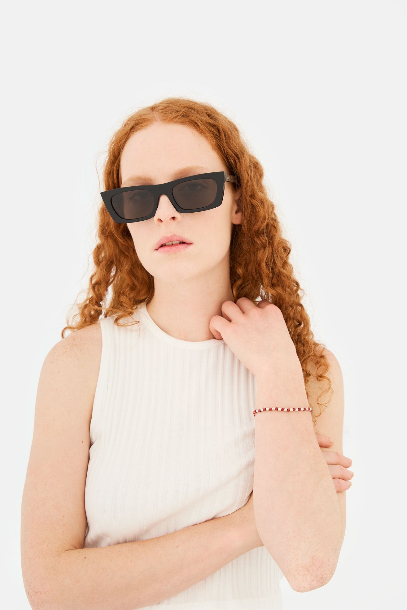 Acetato italiano de alta calidad en un acabado negro atemporal. Lentes Zeiss extra negras en base 2. Gafas de alta gama hechas a mano en Italia.
