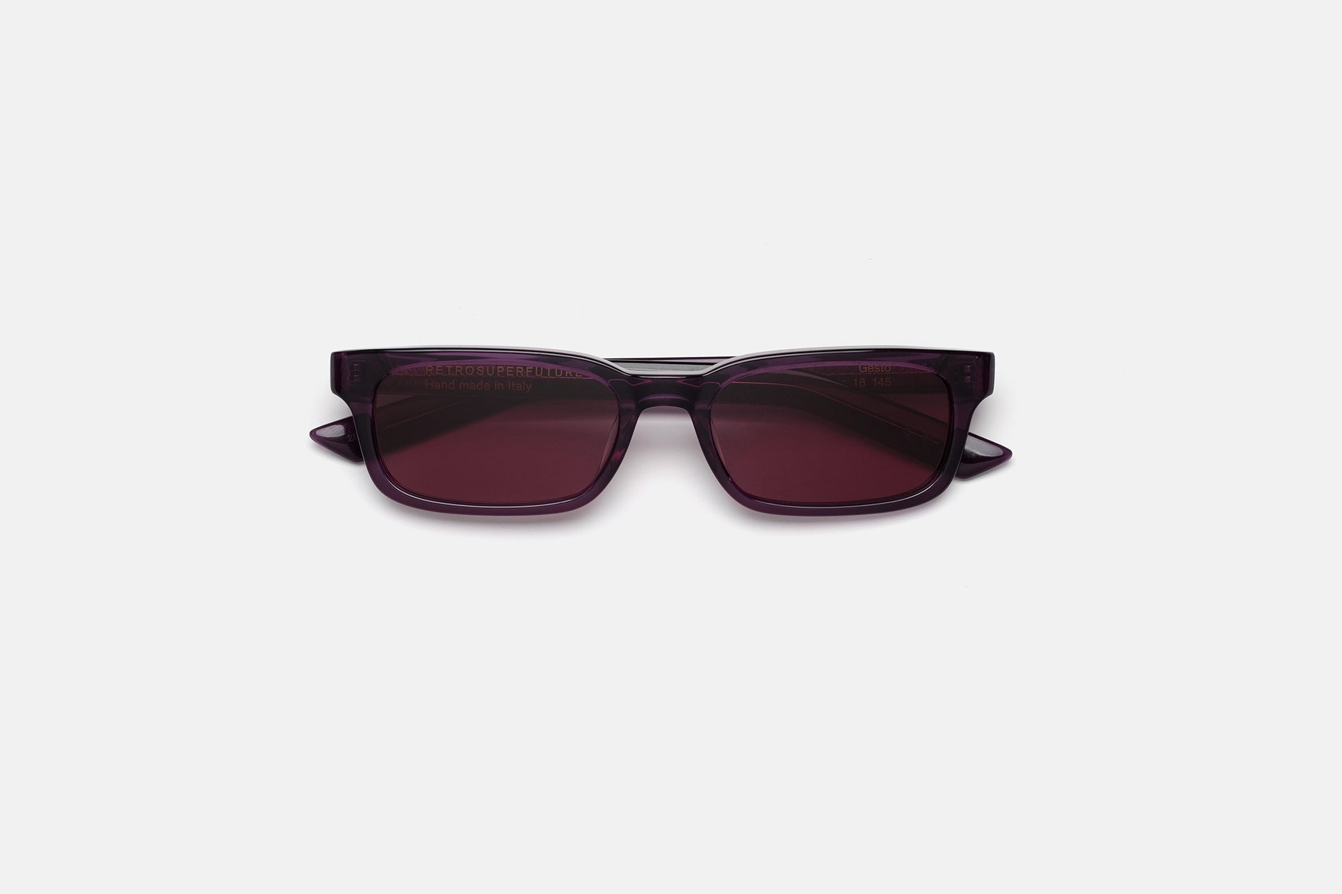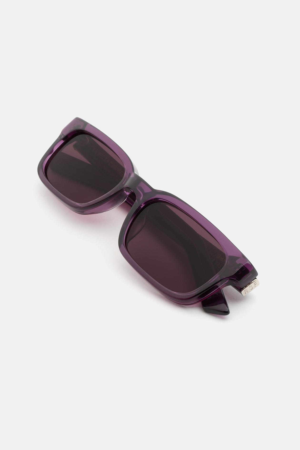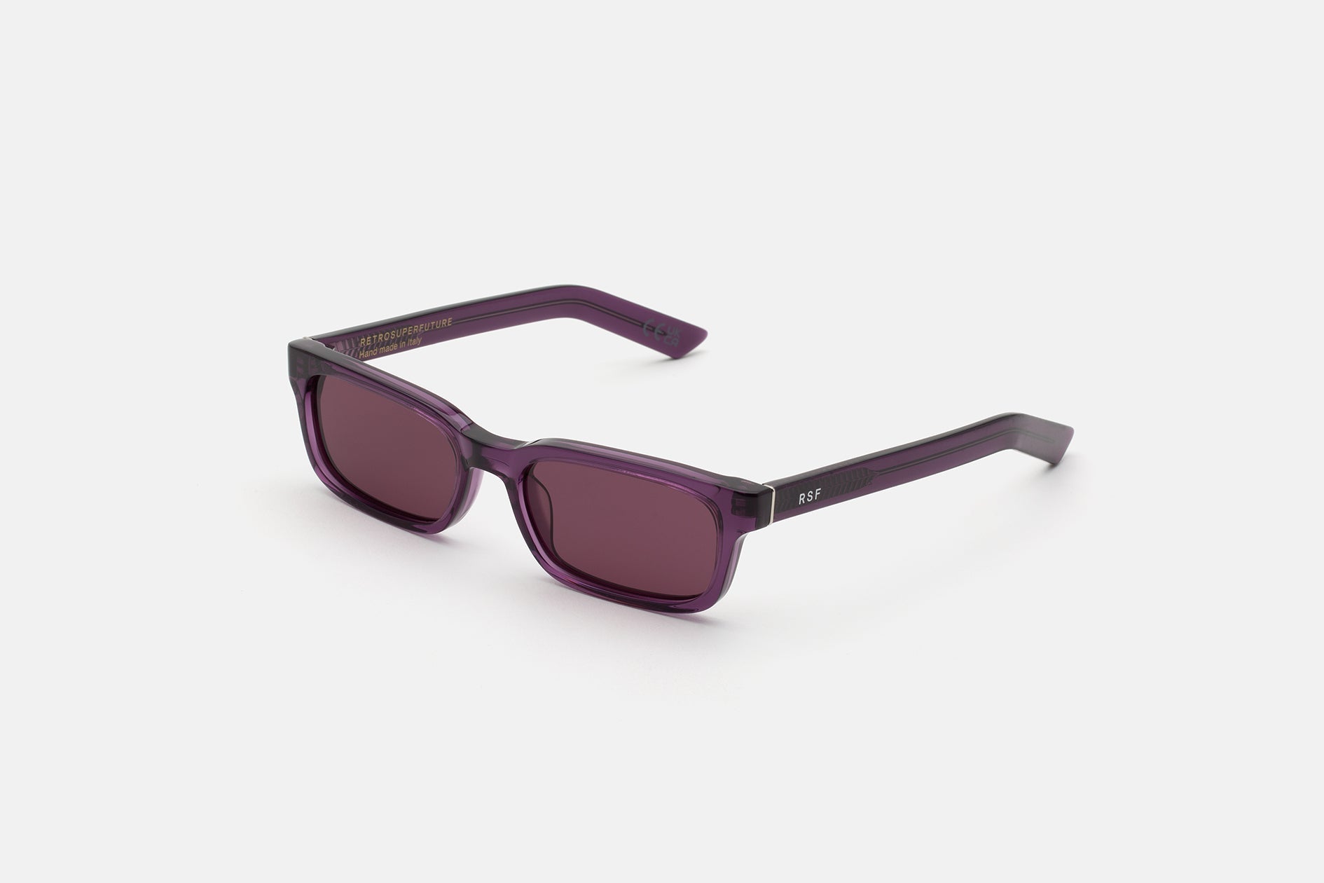 Acetato italiano de alta calidad en un sofisticado acetato cristal berenjena. Lentes berenjena refinadas en la base 2. Gafas de alta gama hechas a mano en Italia.