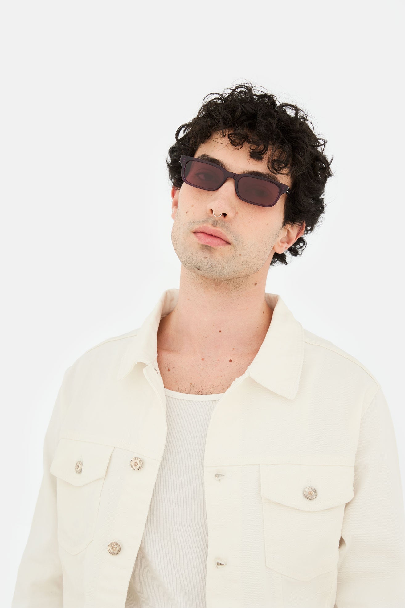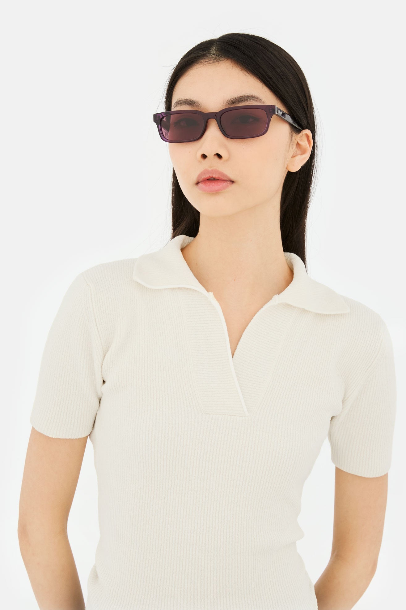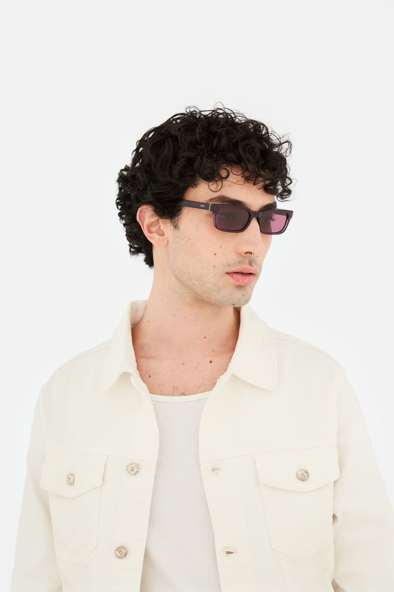 Acetato italiano de alta calidad en un sofisticado acetato cristal berenjena. Lentes berenjena refinadas en la base 2. Gafas de alta gama hechas a mano en Italia.