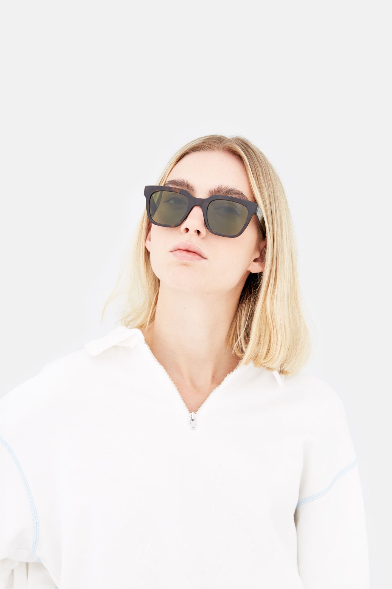 Un clásico atemporal diseñado para la colección / Verano 2020: Giusto es un marco esencial caracterizado por un perfil cuadrado y un puente nasal bajo.Una reinterpretación aguda de los icónicos años 50, Giusto presenta bordes de acetato gruesos y resistentes y lentes geométricos anchos.Esta versión de Giusto viene en un rico acetato habanero y lente verde botella.La caja contiene un estuche semiduro y un paño de limpieza.
