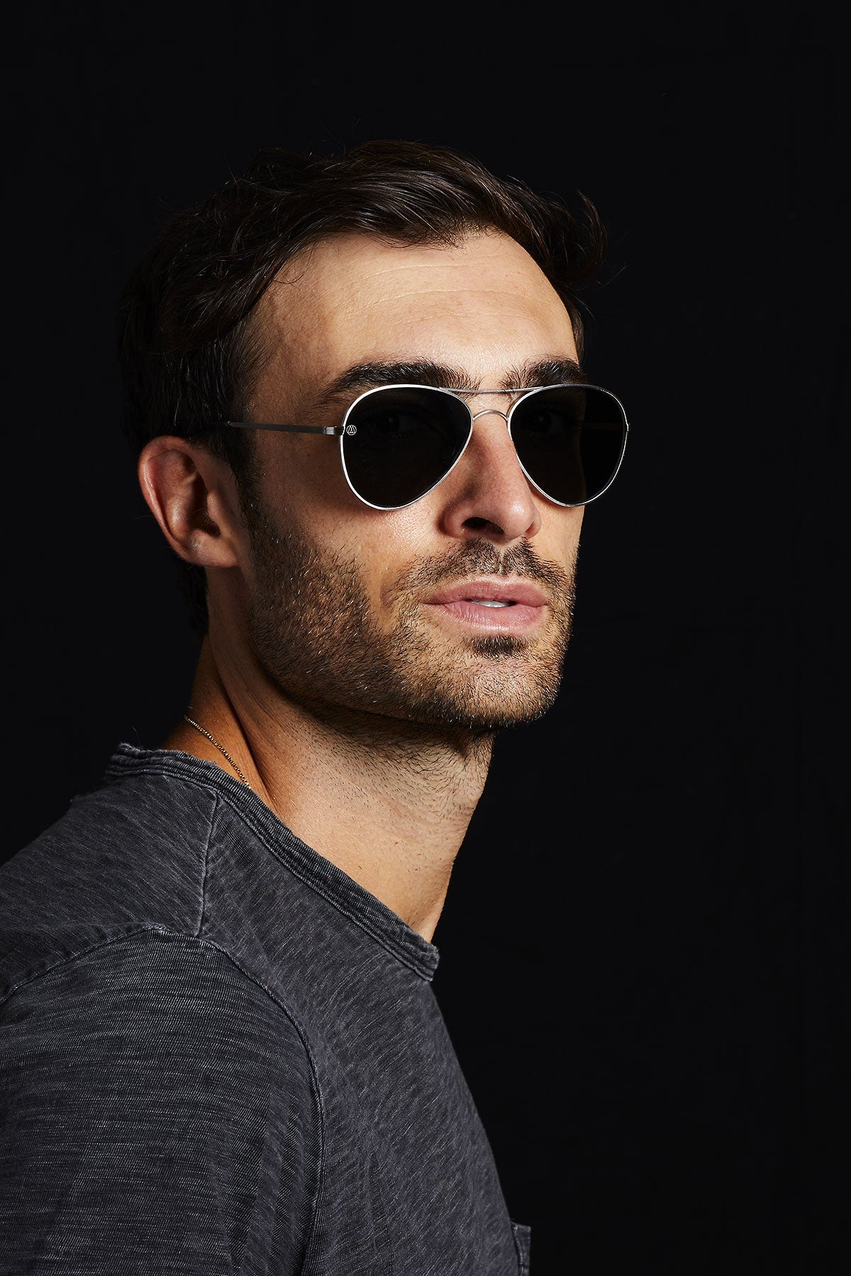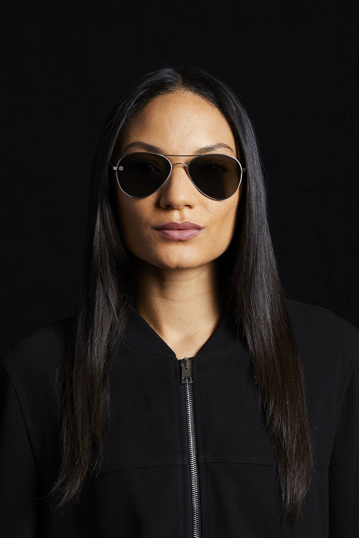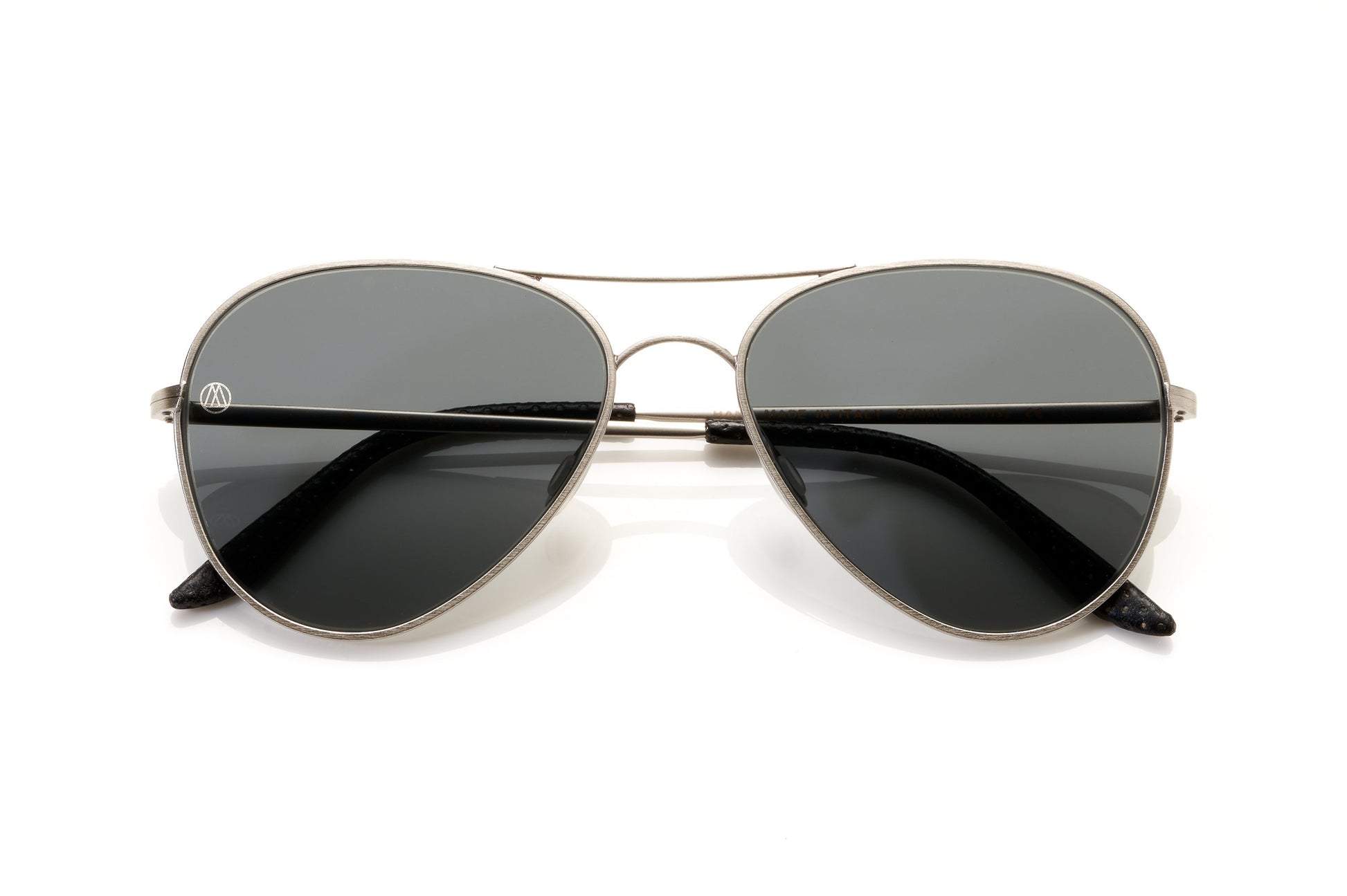 MARCO: Tratamiento de metal hipoalergénico, color SILVER SATIN. Ultra ligero Brazos de metal flexibles. Almohadilla de silicona ergonómica. Puntas de templo de cuero perforado hecho a mano, NEGRO.