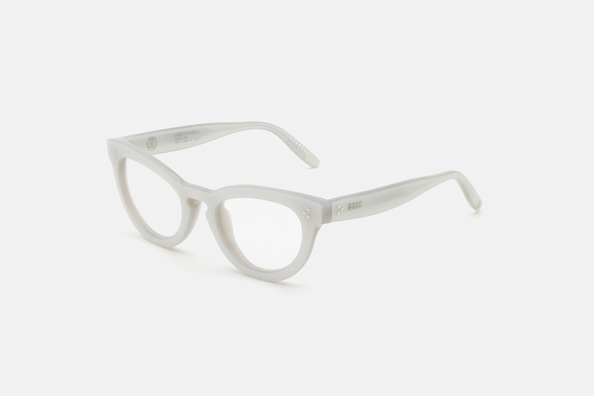 Creado para la marca italoamericana de alta gama Ottomila, Iris es un marco óptico icónico que eleva las formas atemporales de ojo de gato con un toque moderno.Inspiradas en la cultura intelectual de mediados de siglo distintiva de la Nueva York de la posguerra, estas monturas cuentan con bordes gruesos con patillas angulares y un puente nasal en forma de ojo de cerradura.Este diseño clásico se ve realzado por acabados de lujo, como acetato pulido a mano y remaches de metal hechos a mano.Esta versión viene en un acetato blanco nacarado brillante.