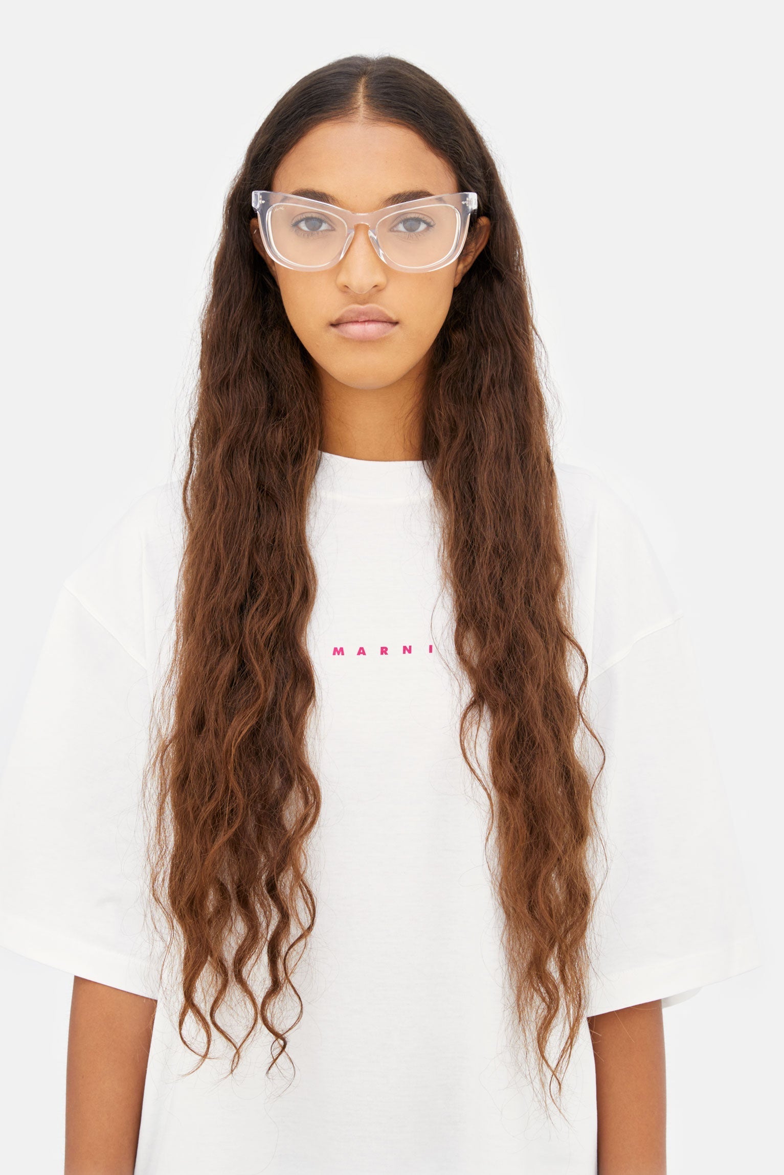 Diseñada exclusivamente para Marni, Isamu es una interpretación innovadora de las siluetas clásicas de los años 50's. Esta montura presenta gruesos bordes de acetato, estirados diagonalmente para formar una línea de cejas en forma de V, lo que le da un aspecto futurista. Isamu, practica y única, se inspira en las geometrías puras del diseño japones, con énfasis en la complejidad de la elegancia.