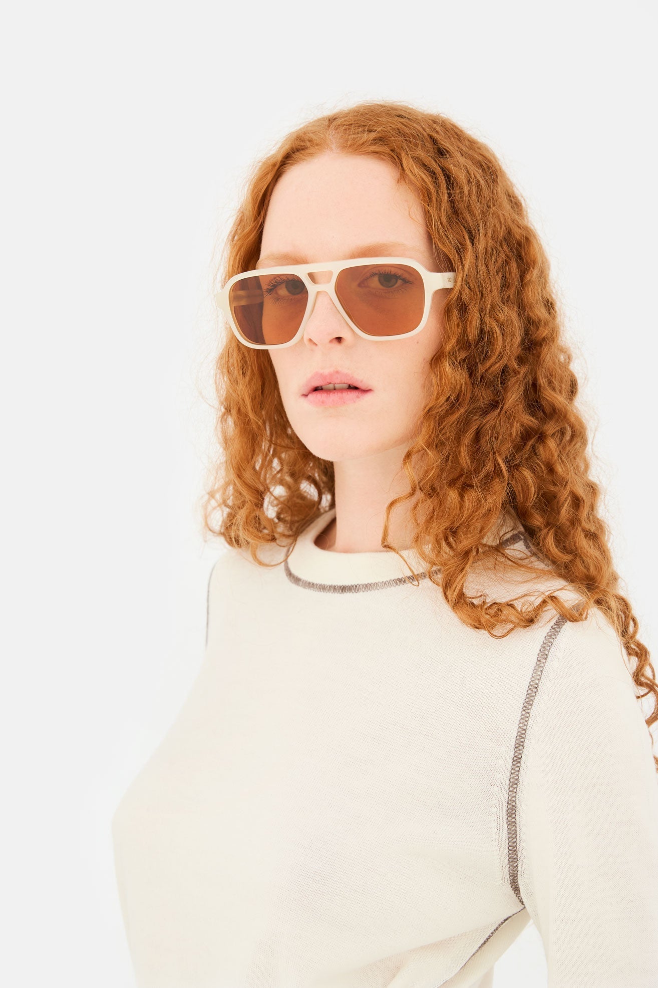 Acetato italiano de alta calidad en un acetato suave y cremoso. Montura de refinadas lentes marrones de Zeiss en base 4. Gafas de primera calidad hechas a mano en Italia.