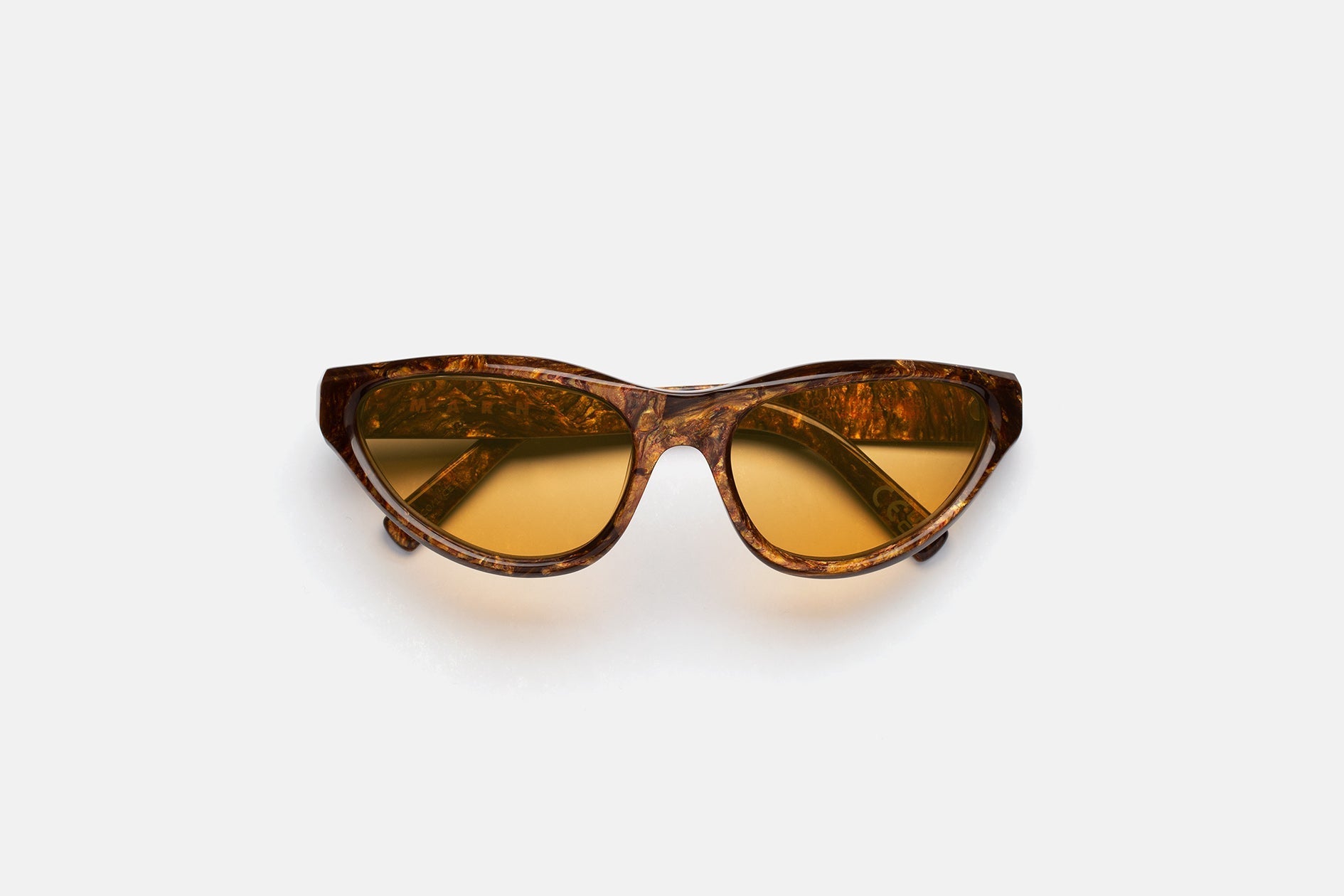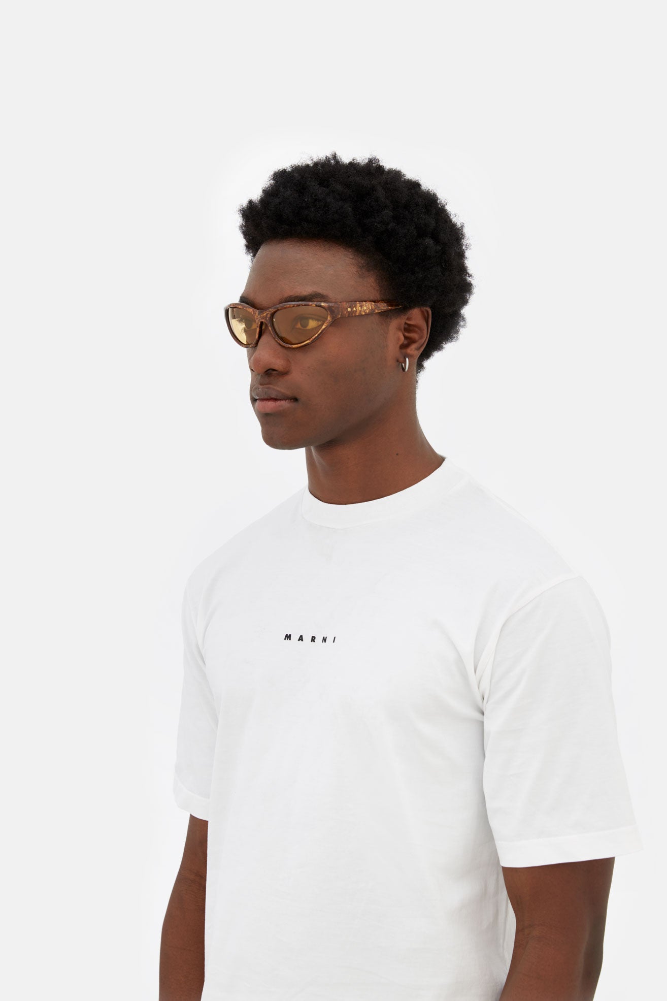 Diseñadas en exclusiva para Marni, las Mavericks reinterpretan la estética de los años 90 con un enfoque fresco y vanguardista del estilo. De montura baja y horizontal, Mavericks presenta una construcción curvada de acetato para un diseño envolvente. Los bordes tallados elevan la estética de alta tecnología del modelo, para una auténtica pieza futurista de gafas. Este modelo está disponible en acetato con textura de madera y cristales tintados en marrón.