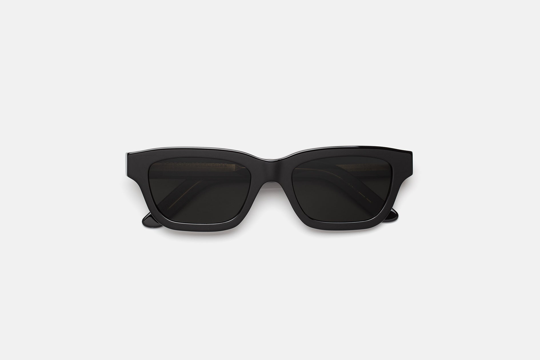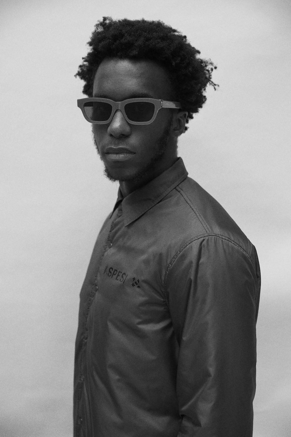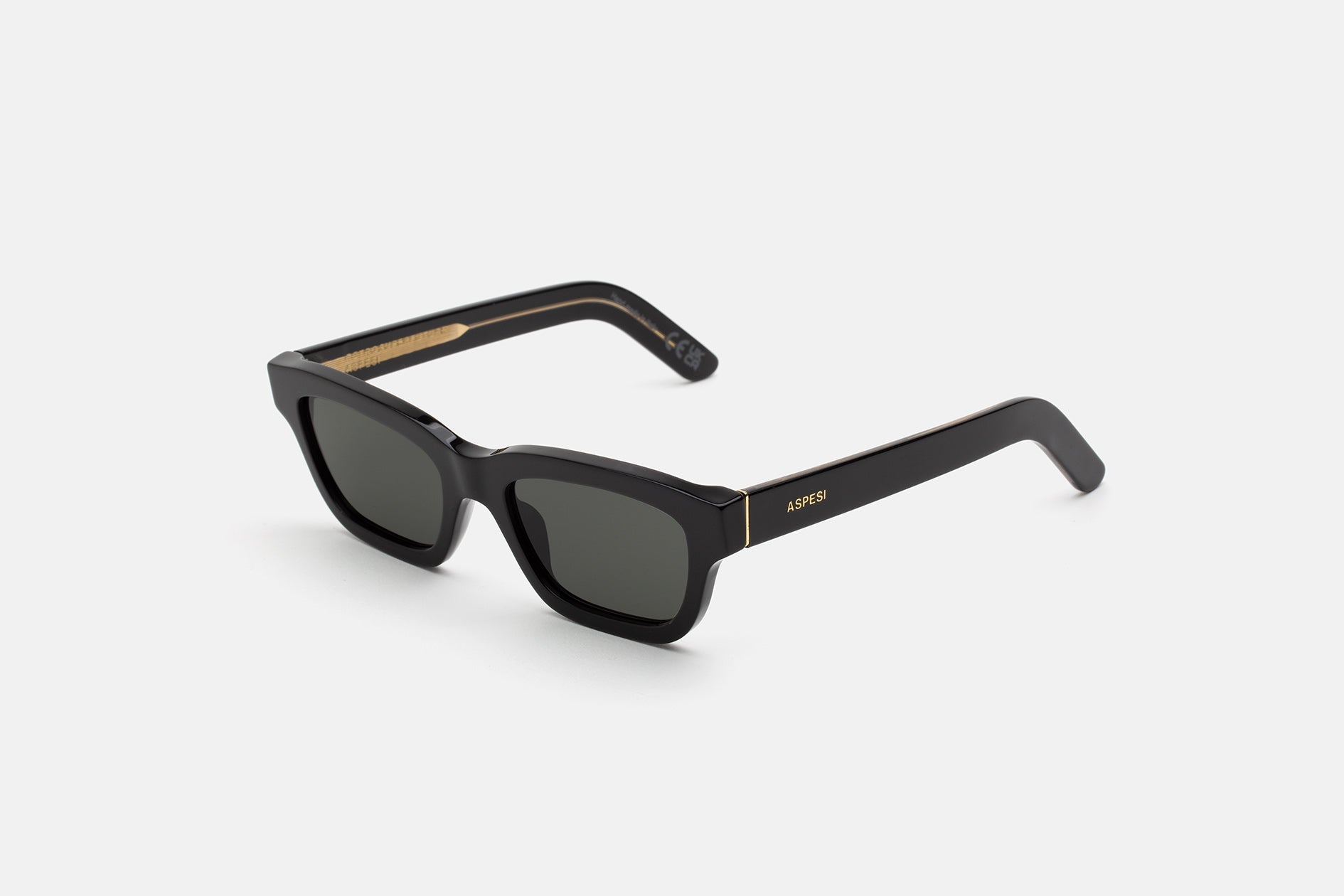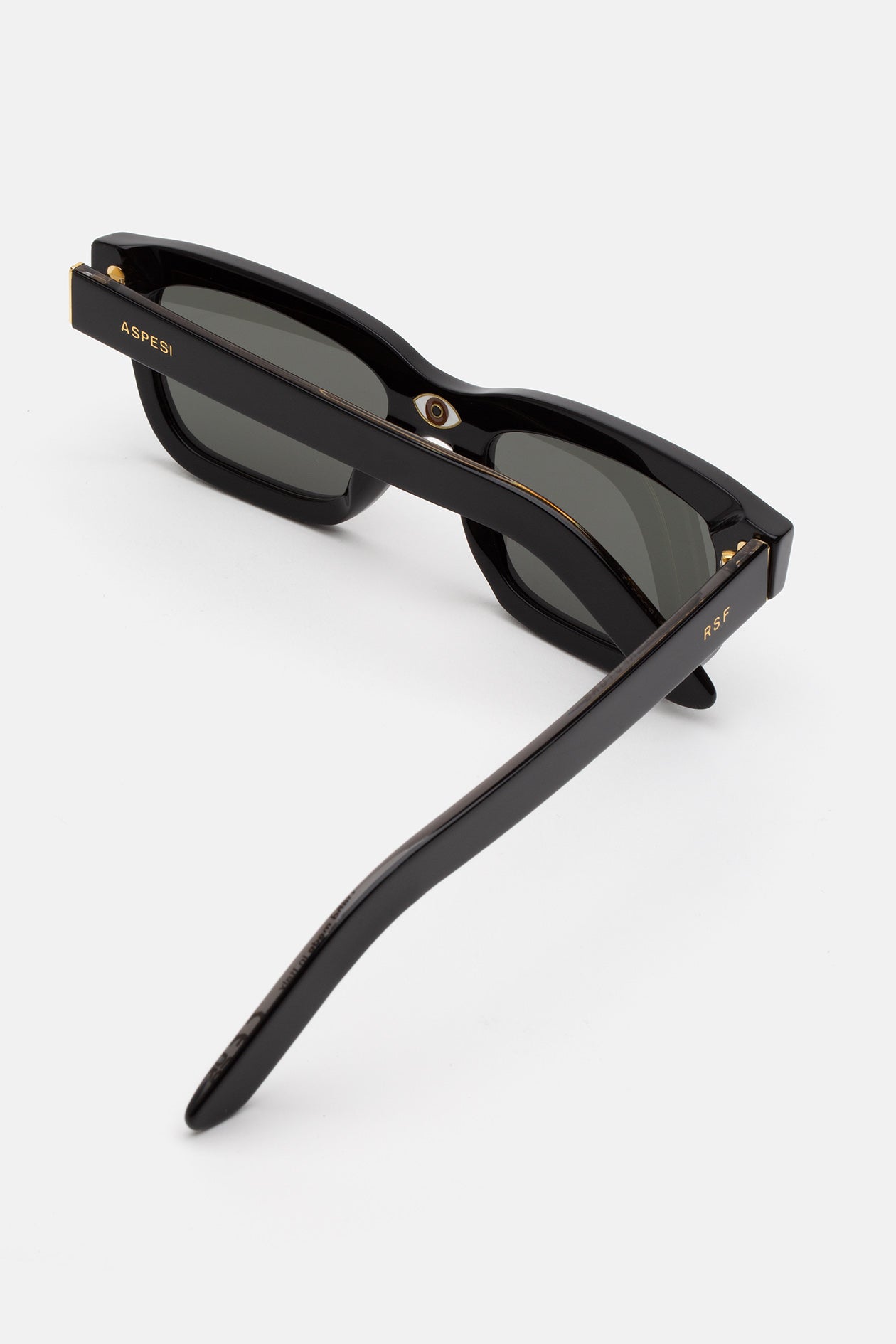 Este modelo celebra el enfoque de diseño de Aspesi con una forma clásica inspirada en los años 50s que viene en un acabado completamente negro con una divertida decoración en forma de ojo en el interior del puente nasal.