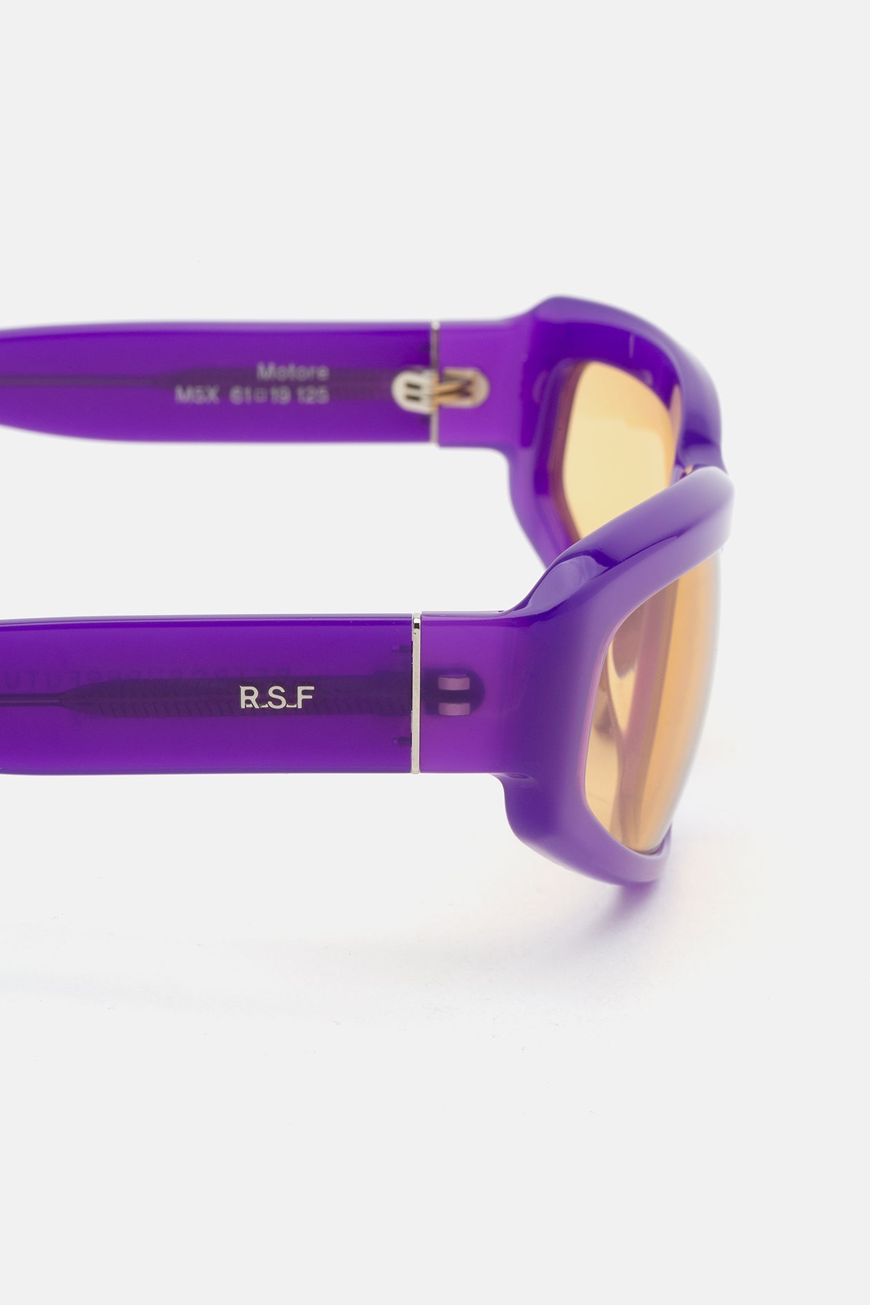 Motore vino a esta tierra con un núcleo atlético, pero maduró gradualmente con el tiempo y gracias a su evolución, este diseño se convirtió en una pieza elegante y vanguardista que cuenta con un carácter fuerte y seguro.Las líneas nítidas y la montura baja de Motore mantuvieron el carácter rápido de las gafas, mientras que su meticuloso tallado en acetato y detalles refinados dieron a la pieza su estilo distintivo y sofisticado.Esta versión está disponible en un exclusivo acetato morado y elegantes lentes mostaza.