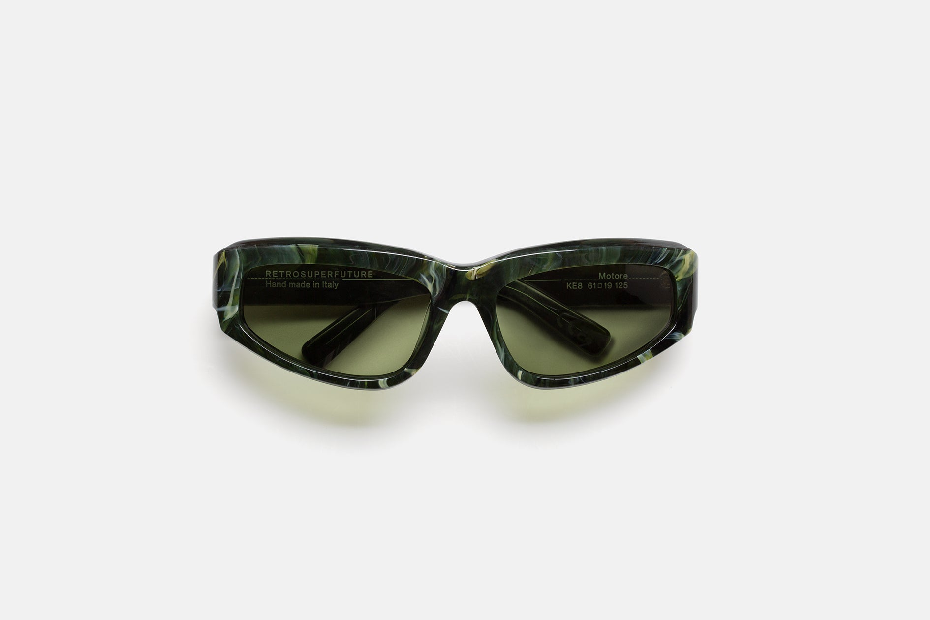 Motore vino a esta tierra con un núcleo atlético, pero maduró gradualmente con el tiempo y gracias a su evolución, este diseño se convirtió en una pieza elegante y vanguardista que cuenta con un carácter fuerte y seguro.Las líneas nítidas y la montura baja de Motore mantuvieron el carácter rápido de las gafas, mientras que su meticuloso tallado en acetato y detalles refinados dieron a la pieza su estilo distintivo y sofisticado.Esta versión está disponible en acetato veteado de color verde intenso y lentes de color verde botella.
