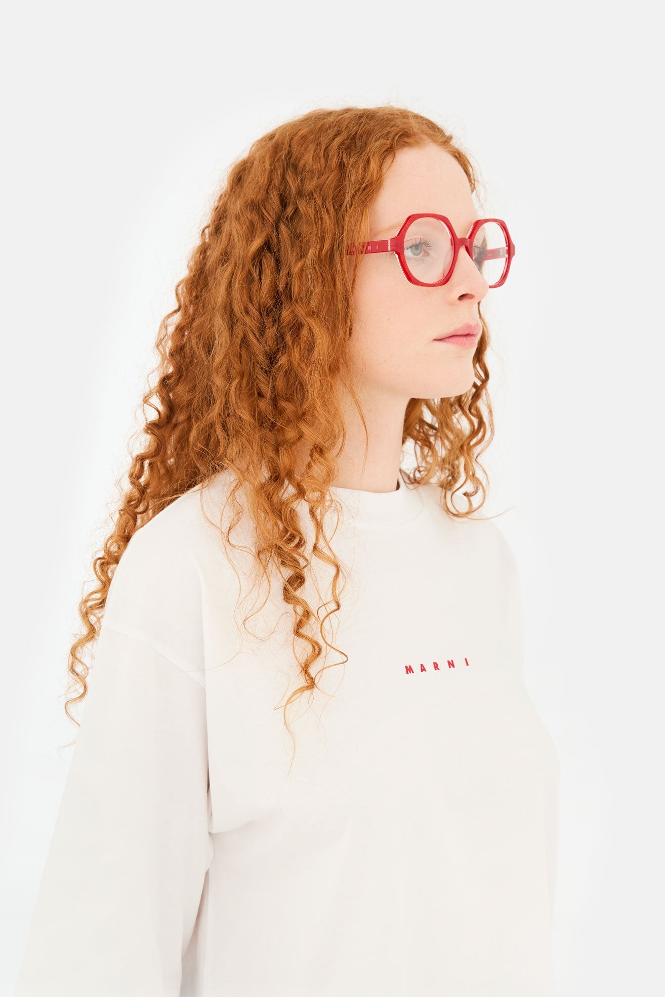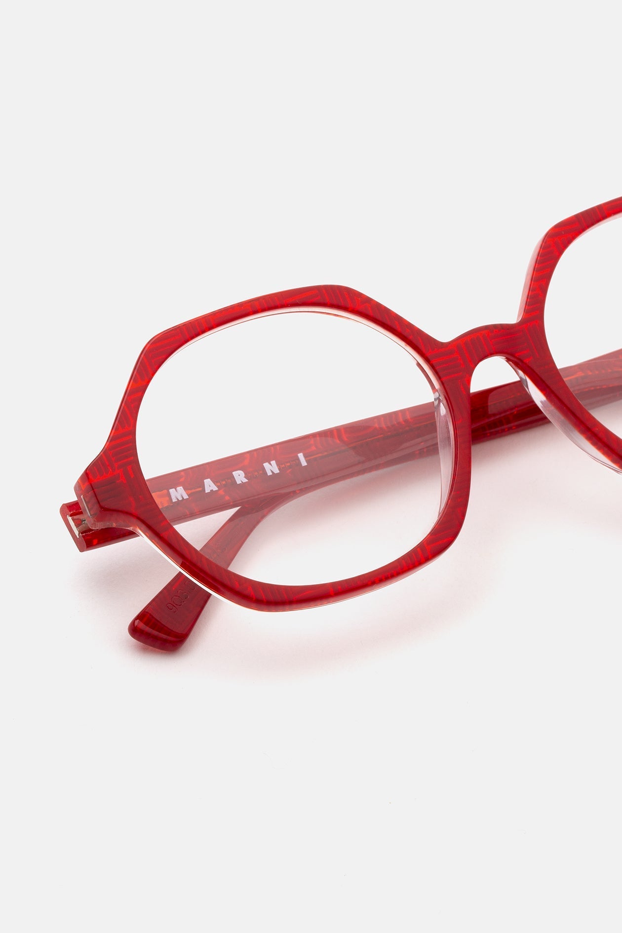 Acetato italiano de alta calidad con un exclusivo y divertido diseño de cuadros rojos. Lentes transparentes de exposición en la base 4. Lentes graduadas no incluidas. Gafas de alta gama hechas a mano en Italia.