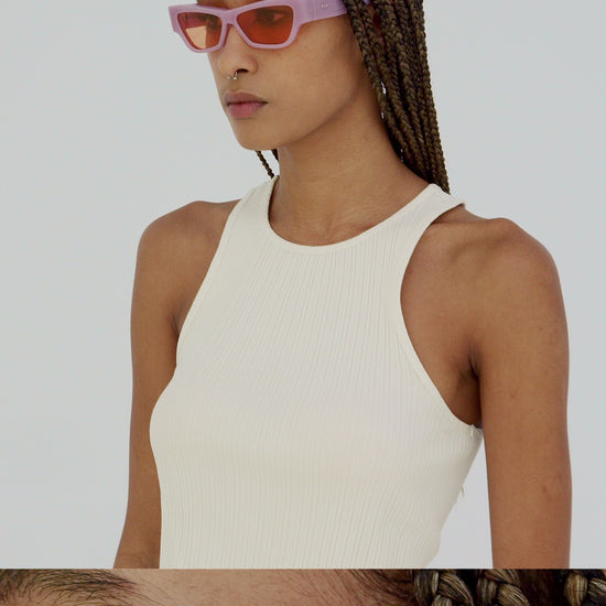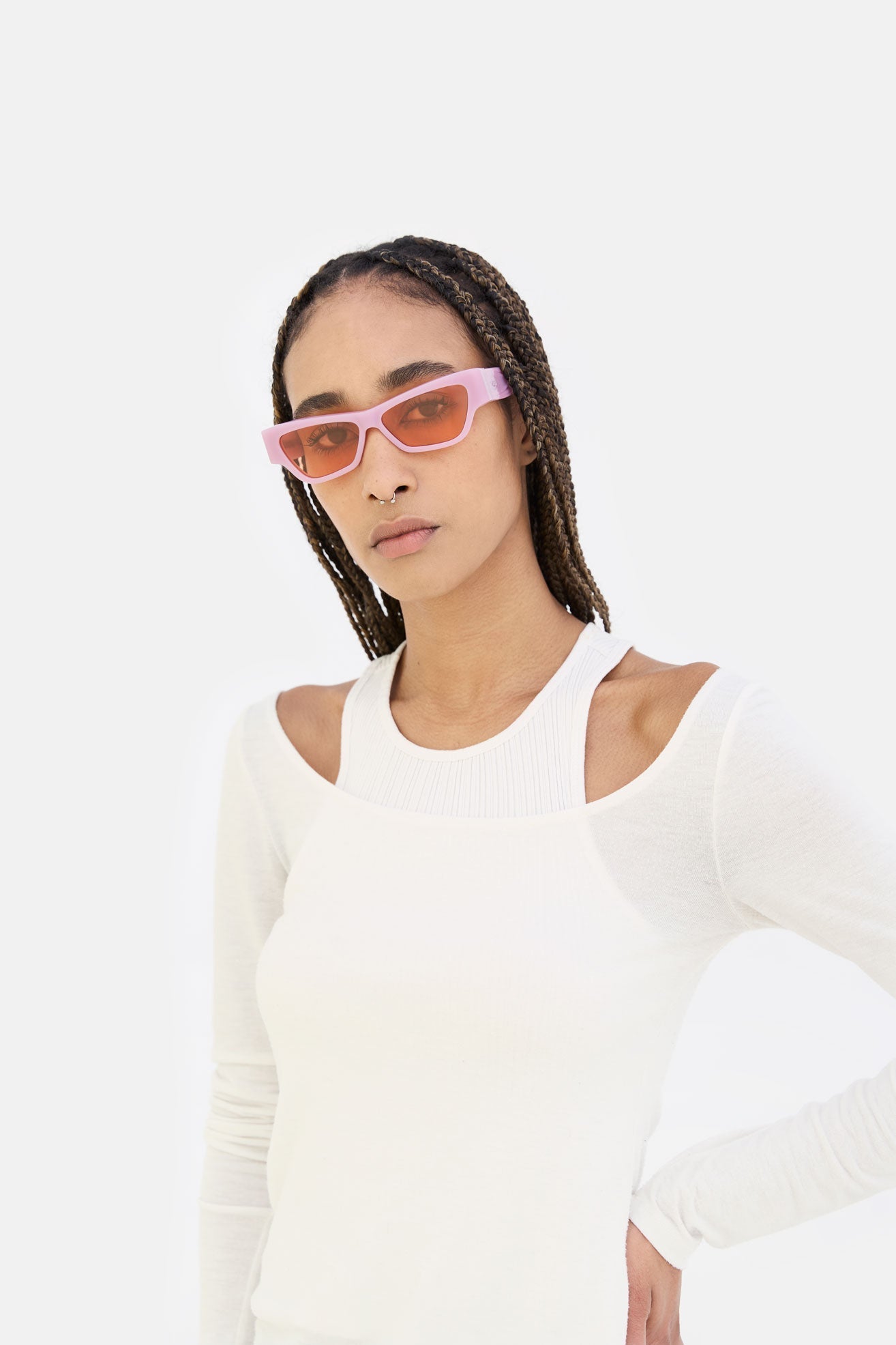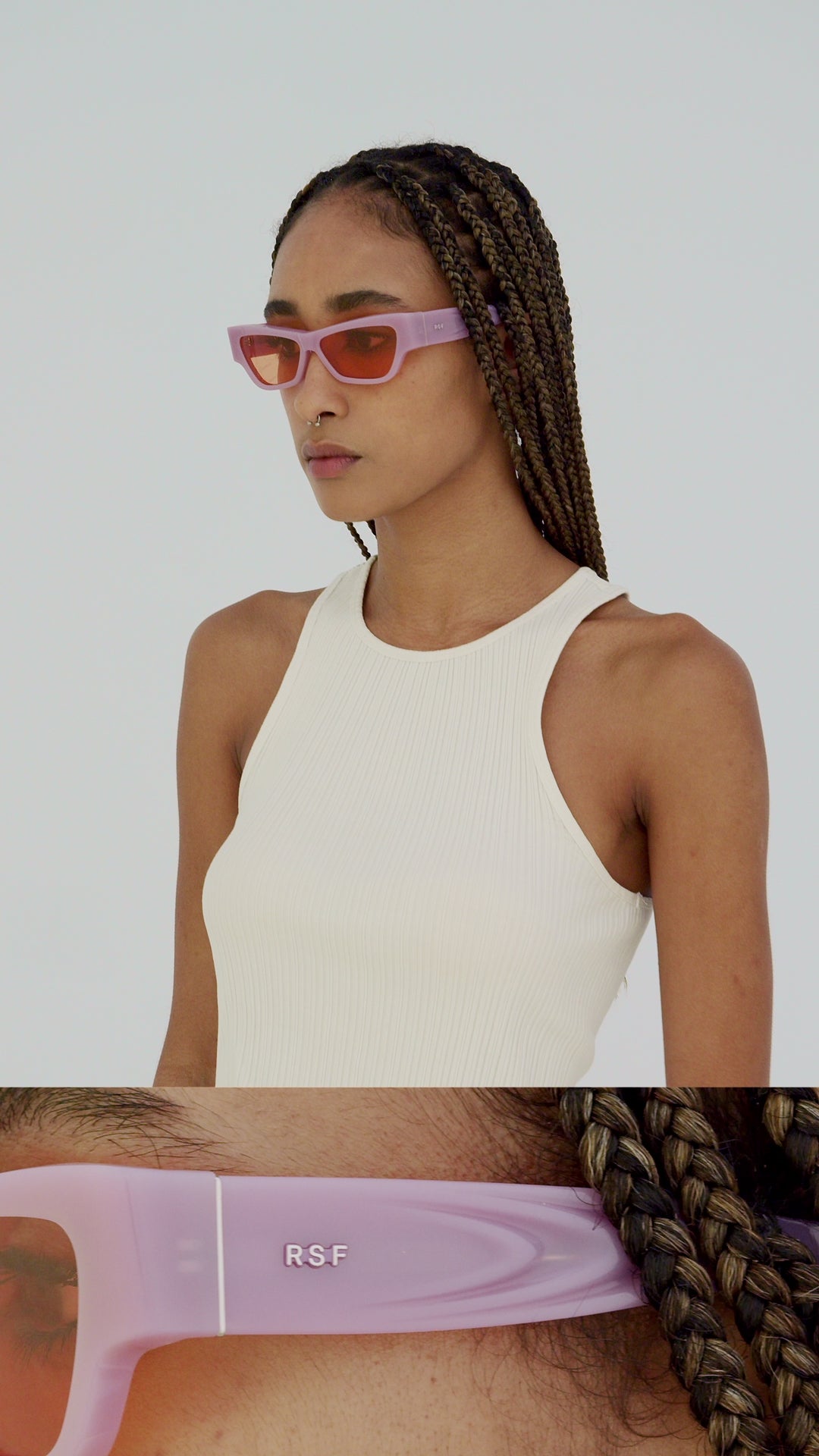 Nameko es una pieza de gafas vanguardista y traviesa que encarna el enfoque de diseño divertido de RSF. Con una silueta ancha y baja, la montura incluye una línea de frente gruesa y un marco frontal geométrico resistente. La mitad inferior del marco presenta bordes inclinados y más delgados. En particular, Nameko destaca por su diseño termoformado único y de otro mundo en las patillas, lo que las convierte en unas gafas distintivas y contemporáneas. Esta versión viene en acetato lila y lentes naranjas.