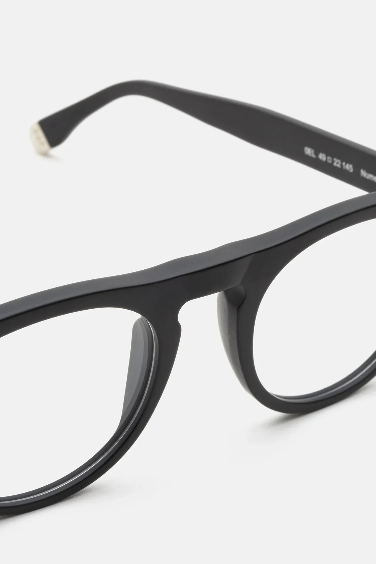Una interpretación moderna de las clásicas monturas de diario de RSF, las Numero 73 son unas gafas graduadas de gran tamaño diseñadas con un estilo urbano audaz. La montura cuenta con lentes redondeadas, un ajuste extra cómodo, patillas elegantes y un puente nasal arqueado que le da un toque elegante. Este modelo está disponible en acetato negro mate. No incluye lentes graduadas. La caja incluye un estuche rígido y un paño de limpieza.