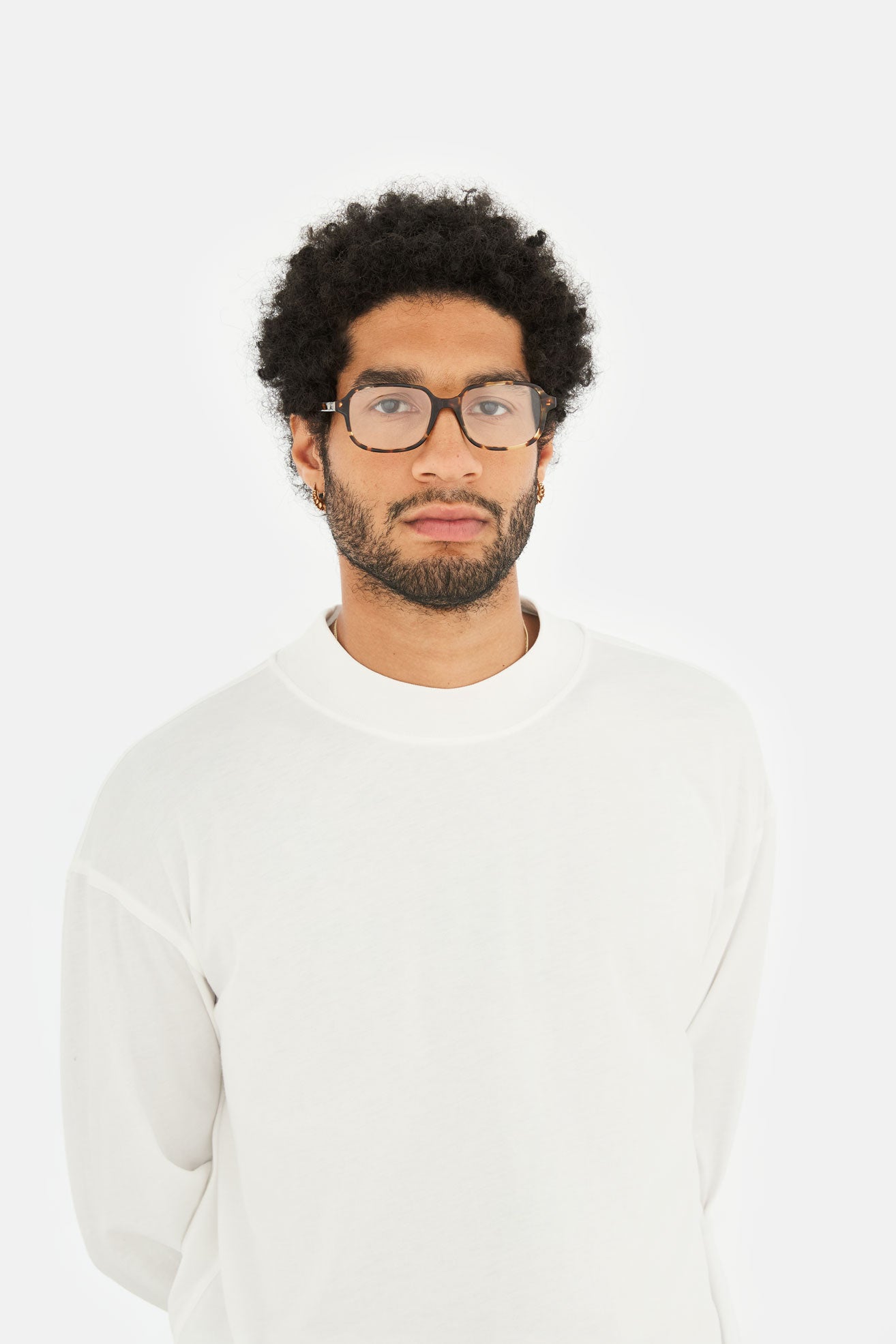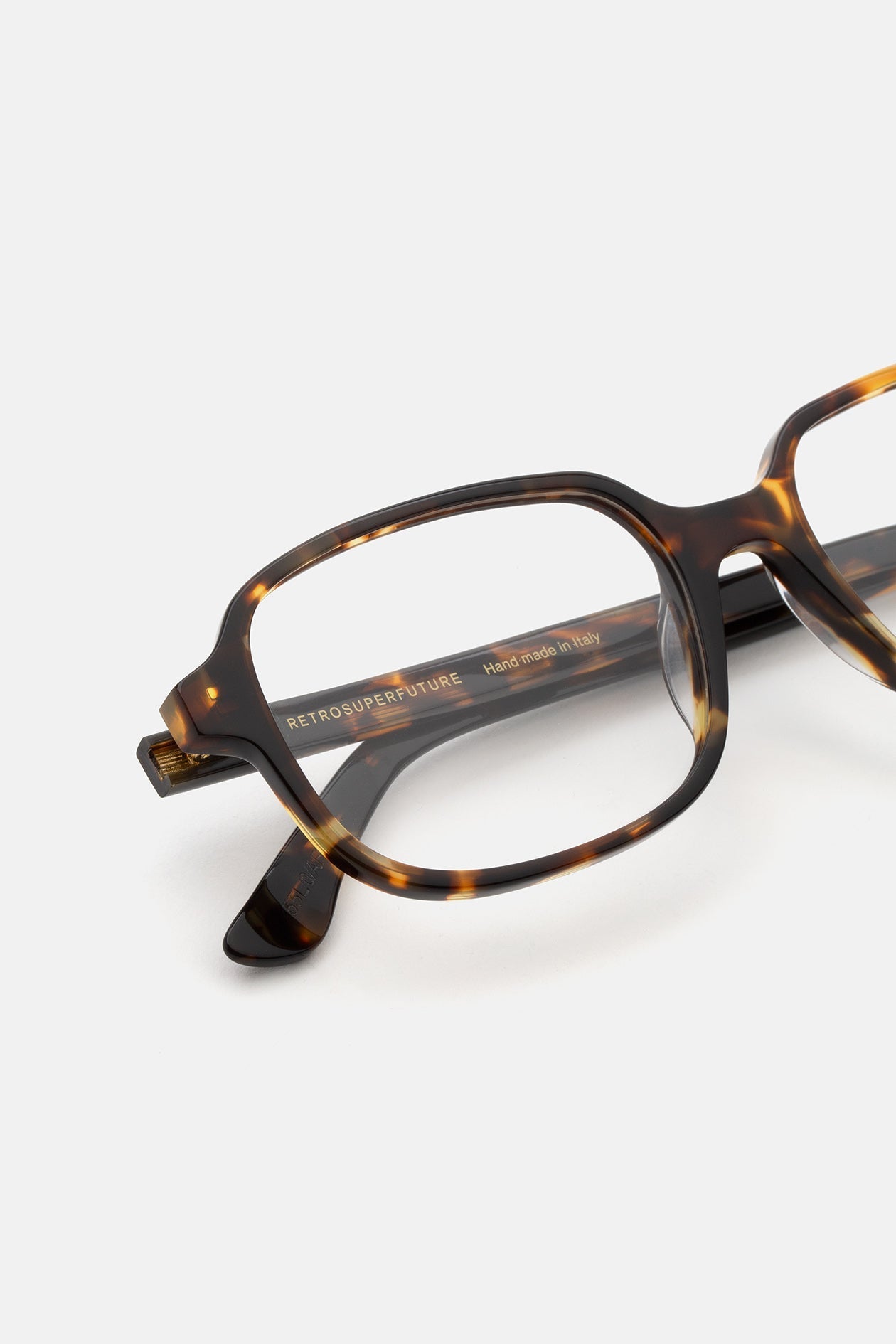 La esencialidad guió el diseño del Numero 05. Su estructura de acetato delgado ultraligera pero duradera crea líneas limpias, diseñadas para el uso diario durante todo el día sin detalles innecesarios. Esta versión del Numero 05 está hecha de un acetato trotoise rico y único. Las lentes RX no están incluidas, esta pieza monta lentes transparentes de demostración. Hecho a mano en Italia