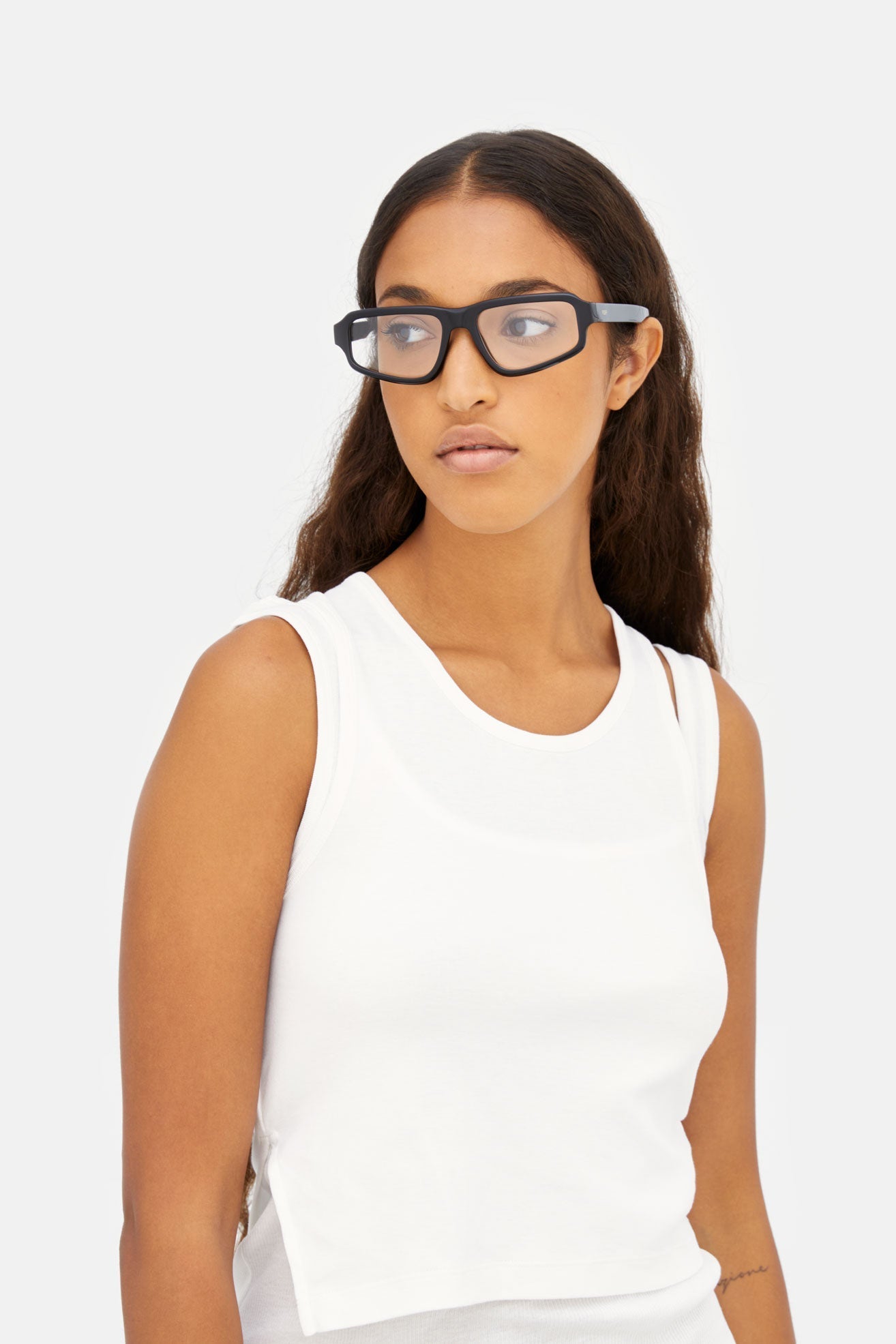 Numero 113 es una montura óptica atrevida con carácter.Inspirándose en prendas estilizadas de estilo deportivo, Numero 113 está diseñado como una máscara compacta, con una línea de frente gruesa y lentes inclinadas.Los bordes de acetato cincelado tienen una forma que los hace livianos en el uso diario, al tiempo que añaden calidad arquitectónica a la montura.Esta versión viene en acetato negro brillante.