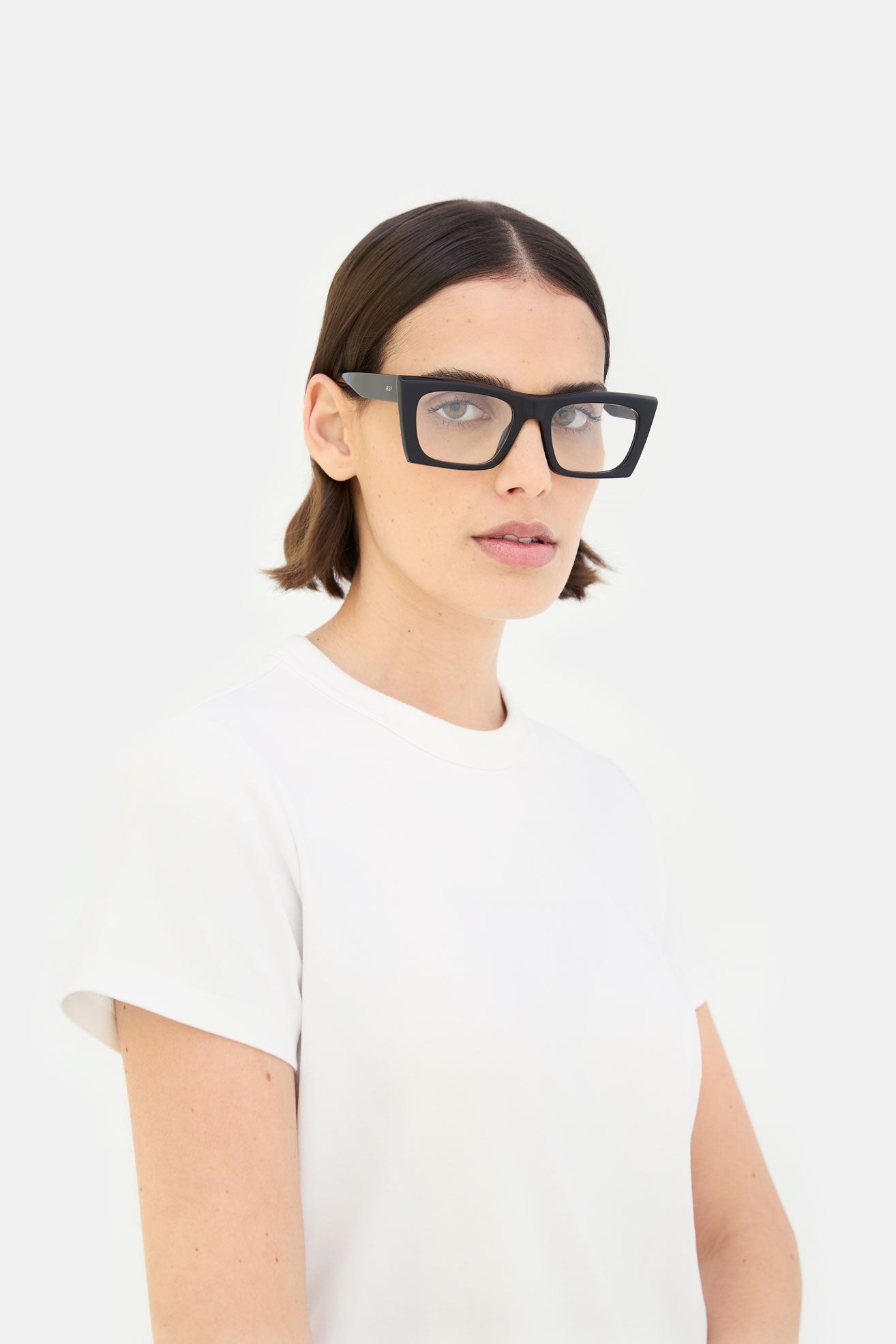 Numero 117 es una gafa de uso diario con carácter. El modelo presenta un perfil angular y afilado, con detalles puntiagudos en las patillas que le dan el aspecto destacado característico que tiene. Con un diseño compacto y resistente, Numero 117 tiene una silueta elegante pero divertida con un toque urbano. Este modelo se presenta en un acetato negro brillante que resalta sus rasgos afilados.