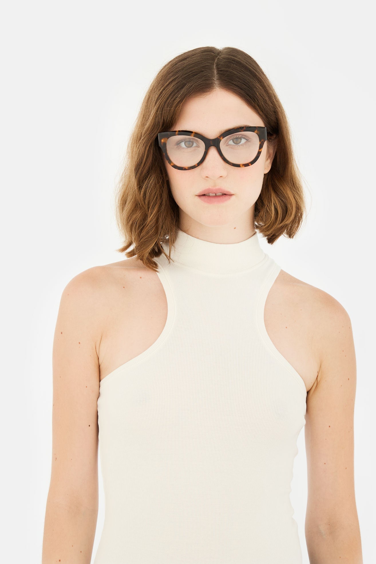Numero 126 presenta un diseño audaz y de ojo de gato de gran tamaño. El diseño presenta una silueta distintiva con bordes redondeados y bordes esculpidos, creando una estética divertida y moderna para un uso versátil. Disponible en un acetato de tortuga único y rico y lentes transparentes. Hecho a mano en Italia.