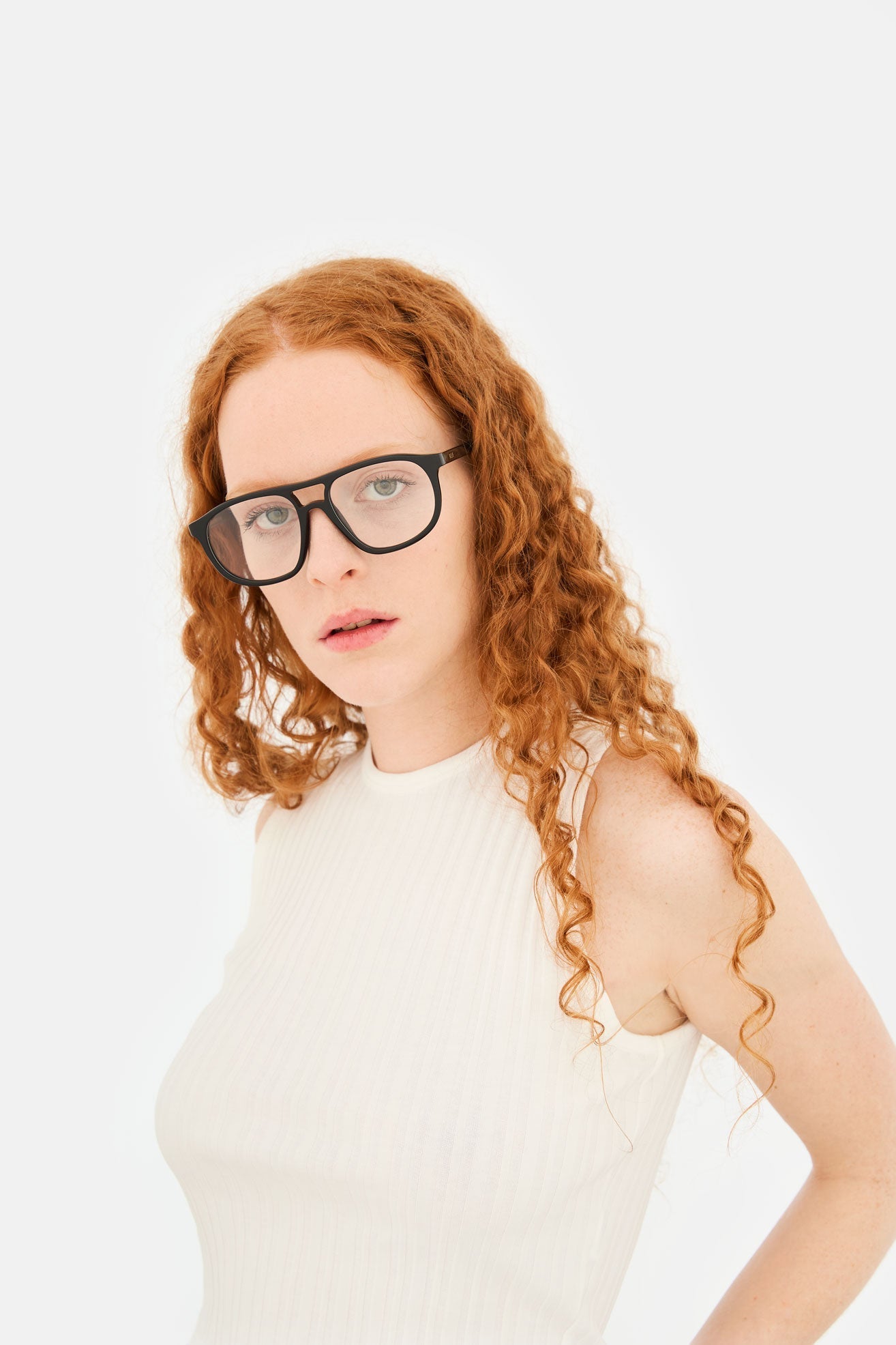 Acetato italiano de alta calidad en acetato negro atemporal. Montaje de lentes de pantalla transparentes en la base 4. Lentes graduadas no incluidas. Gafas de primera calidad hechas a mano en Italia.