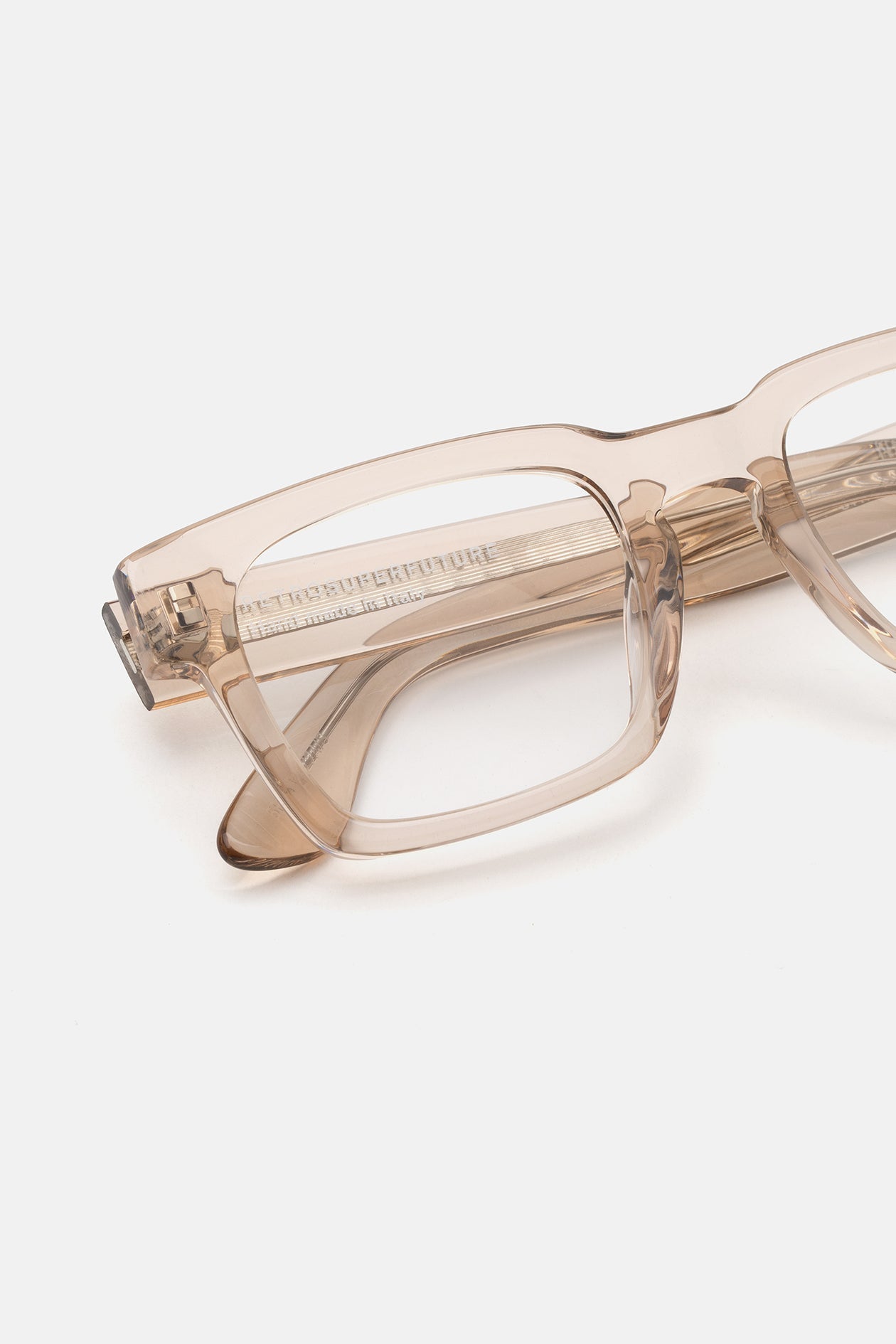 Acetato italiano de alta calidad en acetato de cristal de resina blanda. Lentes de visualización transparentes en la base 4. Lentes graduadas no incluidas. Gafas de alta gama diseñadas en Milán, Italia.