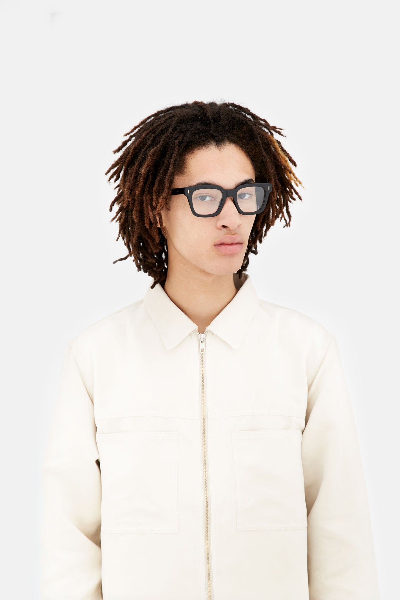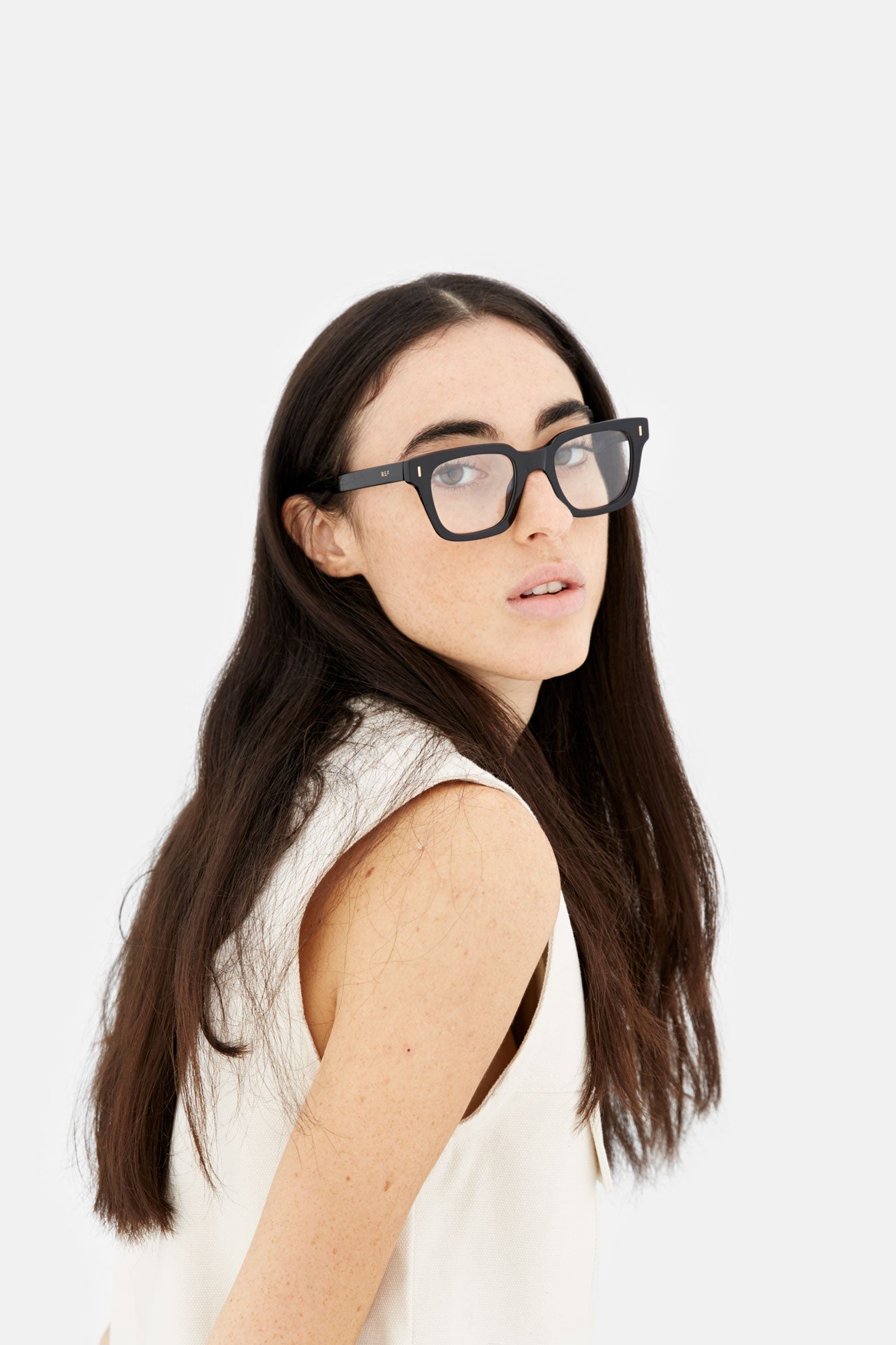 Diseñada para la colección Primavera/Verano 2021, Numero 79 es una silueta icónica, concebida como una interpretación moderna de las clásicas monturas cuadradas. Los gruesos aros de acetato del modelo, con patillas sobresalientes y lentes anchas, están tallados internamente para conseguir ligereza y ajuste. Esta versión se presenta con un acetato negro brillante. Las lentes graduadas no están incluidas.