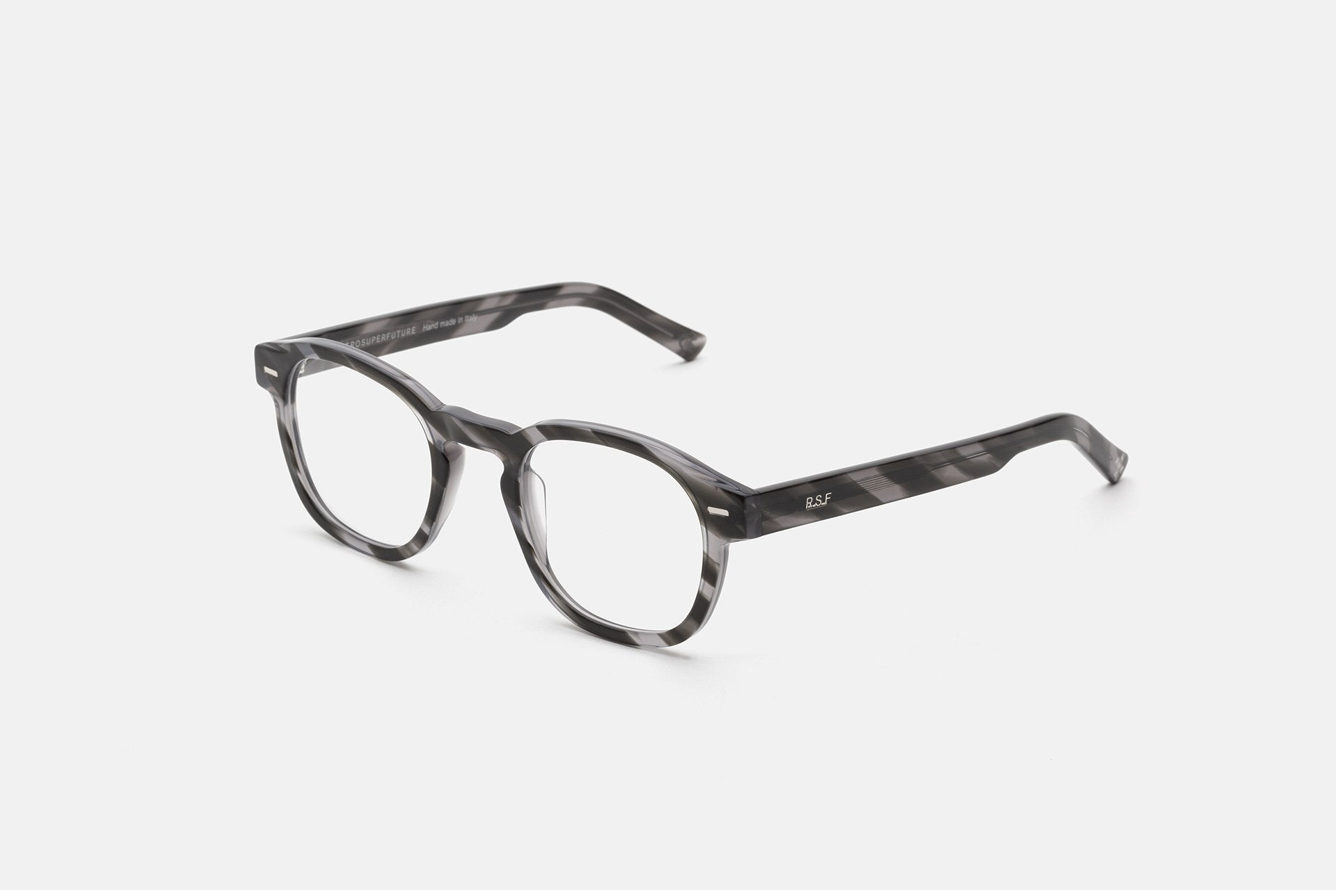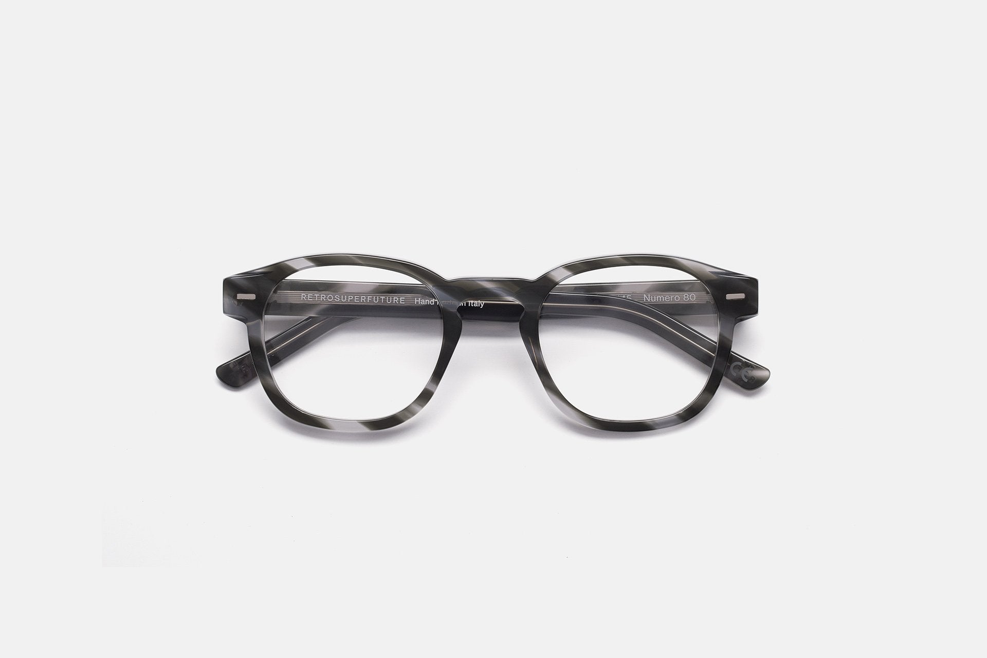 Diseñada para la colección Primavera/Verano 2021, Numero 80 actualiza las referencias vintage para un estilo contemporáneo. Concebida como una montura funcional para el día a día, cuenta con gruesos bordes de acetato, con lentes rectangulares redondeadas y patillas sobresalientes moldeadas para un ajuste perfecto. Esta versión se presenta en un acabado gris habano a rayas. Las lentes graduadas no están incluidas.