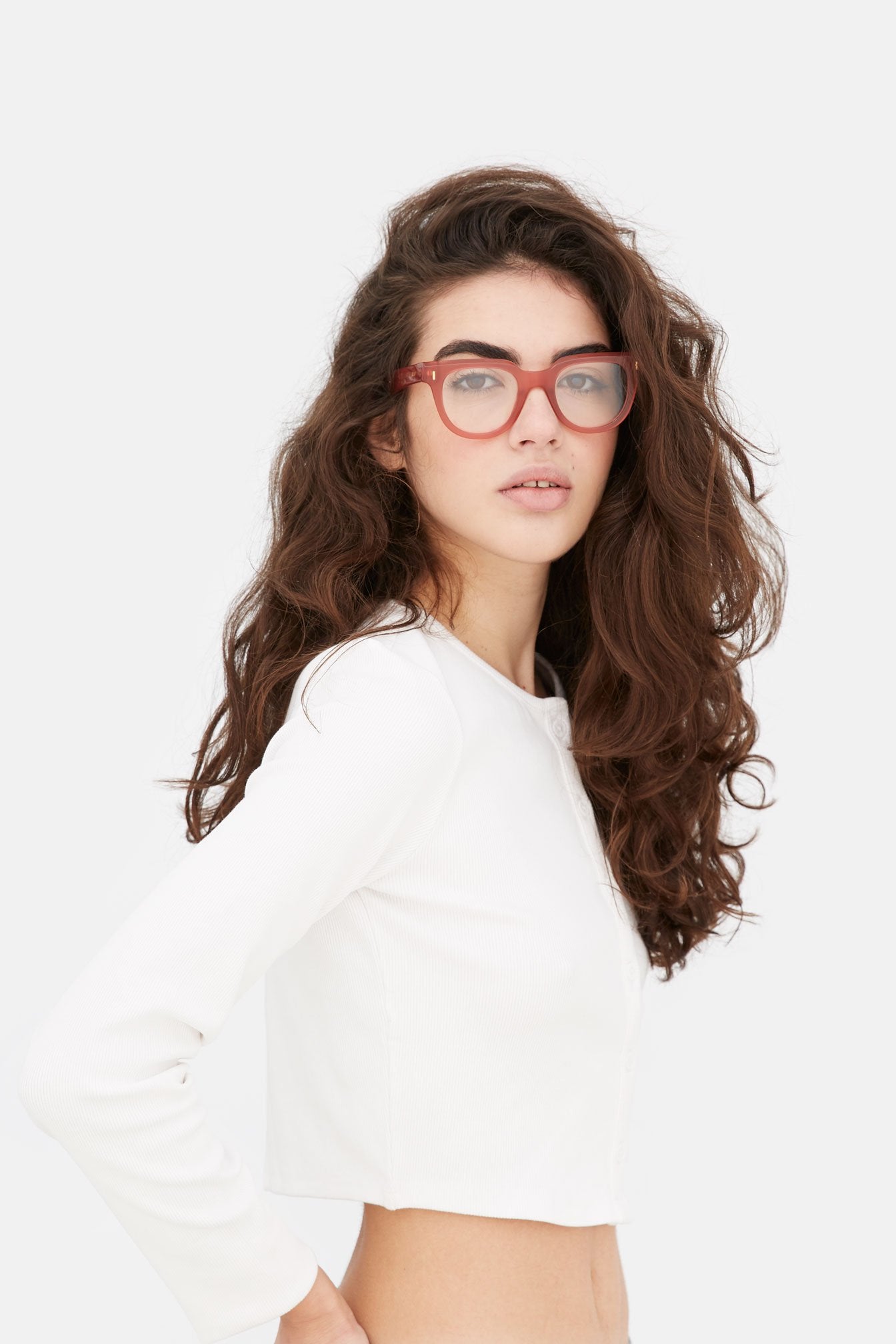 Diseñada para la colección Primavera/Verano 2021, Numero 82 es una silueta contemporánea inspirada en referencias icónicas vintage. El modelo presenta una línea de cejas angulosa, con bordes redondeados que envuelven sus generosas lentes para un ajuste perfecto. Esta versión presenta un sofisticado acetato de cristal rojo claro. Las lentes graduadas no están incluidas.