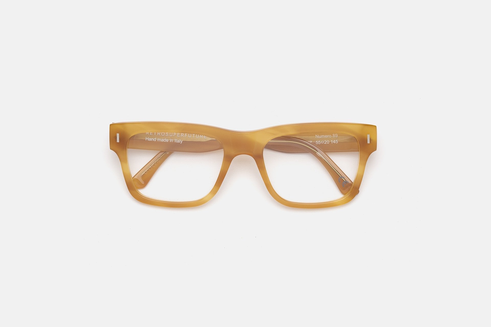 Una silueta geométrica nítida, vista a lo largo de las décadas, actualizada para una experiencia urbana moderna: Numero 89 es una montura rectangular audaz, con un fuerte puente nasal y una gruesa línea superior. Tallada para un ajuste más ligero en las llantas, este modelo ofrece un compromiso equilibrado entre comodidad y estilo. Aprovechando la tendencia actual de las monturas de acetato horizontales, Numero 89 es un clásico atemporal. Esta versión se presenta en acetato marrón camel cálido. No se incluyen las lentes graduadas.