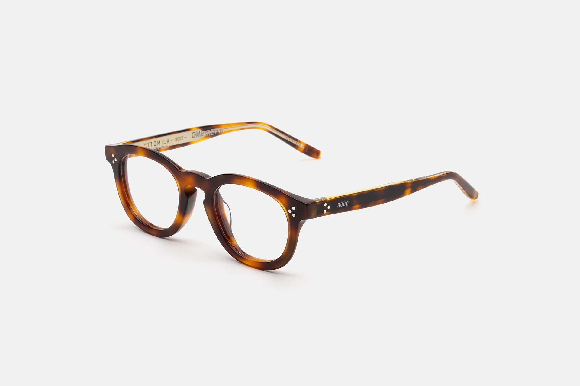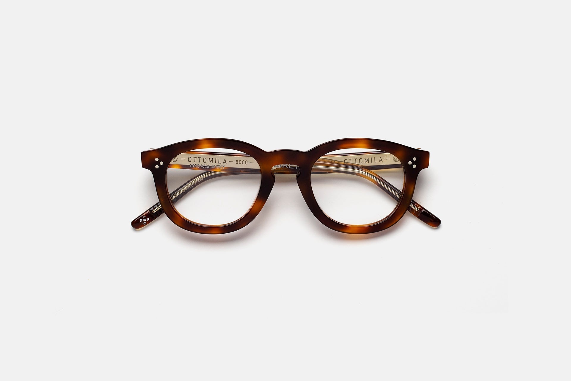 Creada para Ottomila, Ombretta es una interpretación contemporánea de una silueta muy familiar y atemporal: una montura caracterizada por sus curvas redondeadas y su puente nasal en forma de ojo de cerradura con tachuelas metálicas en el frente. El modelo cuenta con gruesos aros de acetato meticulosamente elaborados con bordes inclinados y tallados en el interior para conseguir ligereza, ajuste y comodidad. Se trata de una silueta discreta que se ve realzada por una artesanía excepcional y la atención a los detalles para los verdaderos conocedores de las gafas. Este modelo se presenta en un vibrante acetato habano.