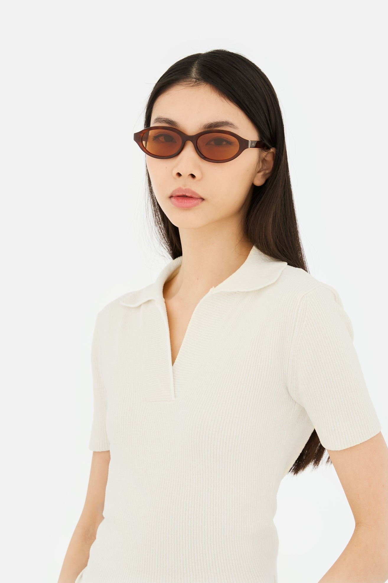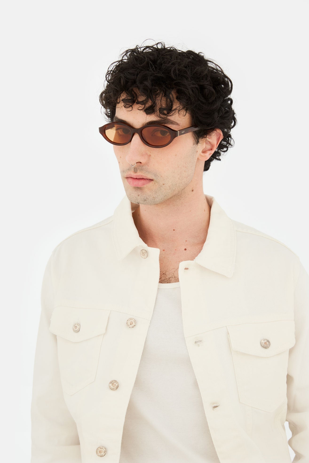 Acetato italiano de alta calidad en un elegante acetato color habana. Elegantes lentes marrones Zeiss de base 2. Gafas de alta gama hechas a mano en Italia.