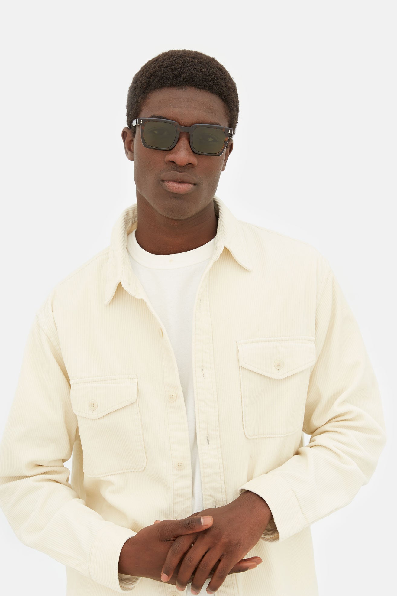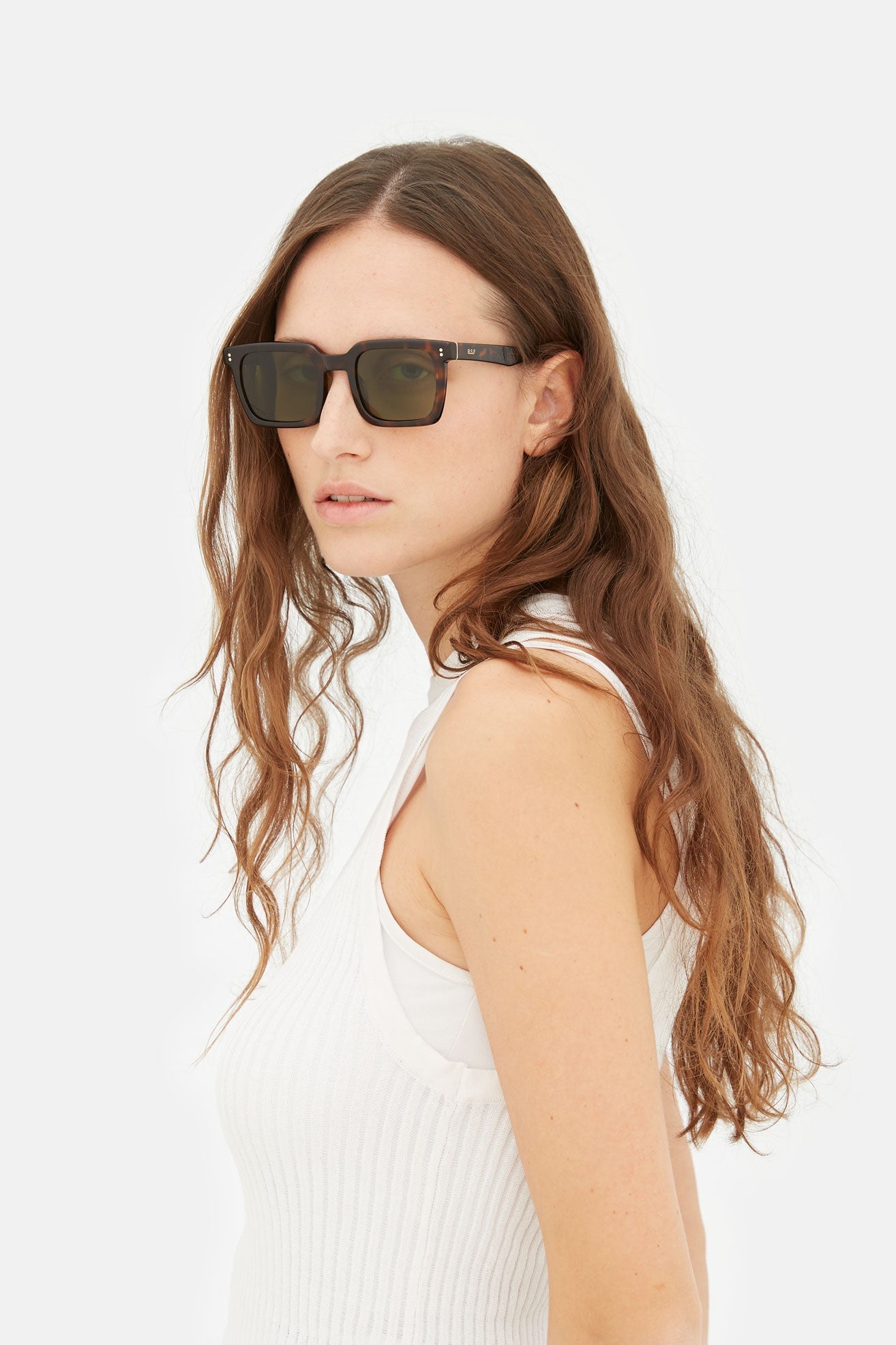 Secolo es una silueta geométrica esencial con una calidad arquitectónica distintiva, donde los ángulos precisos de la montura se equilibran con sus lentes redondeadas. Se trata de una forma sin concesiones, pero adecuada para quienes buscan unas gafas de sol elegantes y cuadradas con un carácter modernista único. Su aparente sencillez y pureza estética esconden detalles cuidadosamente elaborados, como los extremos puntiagudos de las patillas y los afilados detalles angulares de las mismas. Secolo se presenta en un vibrante acetato Habana 3627 con lentes verde botella.