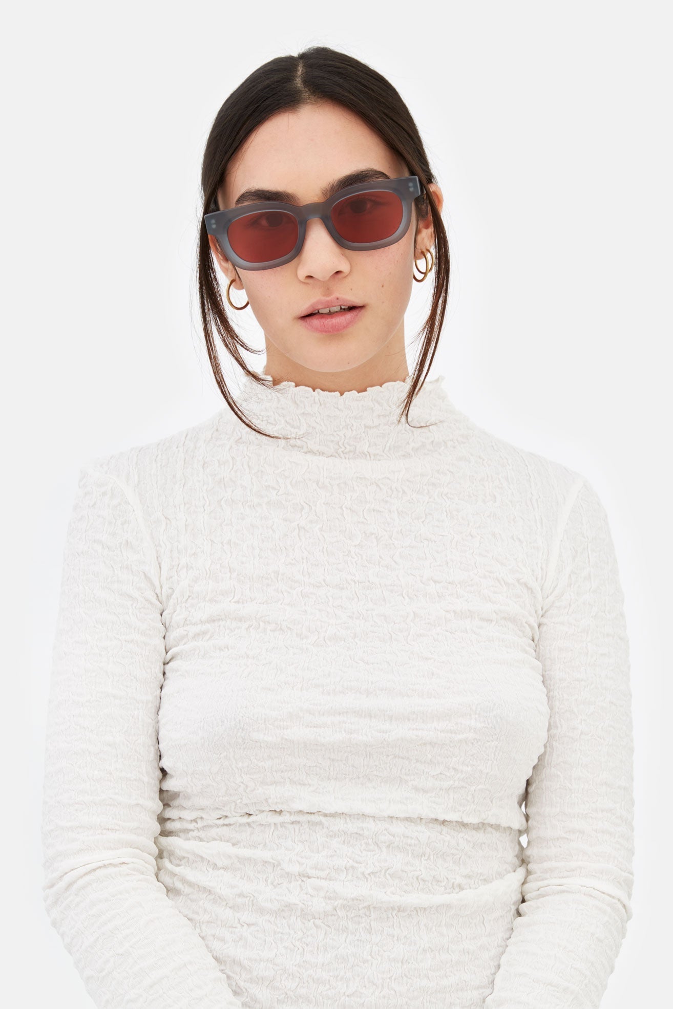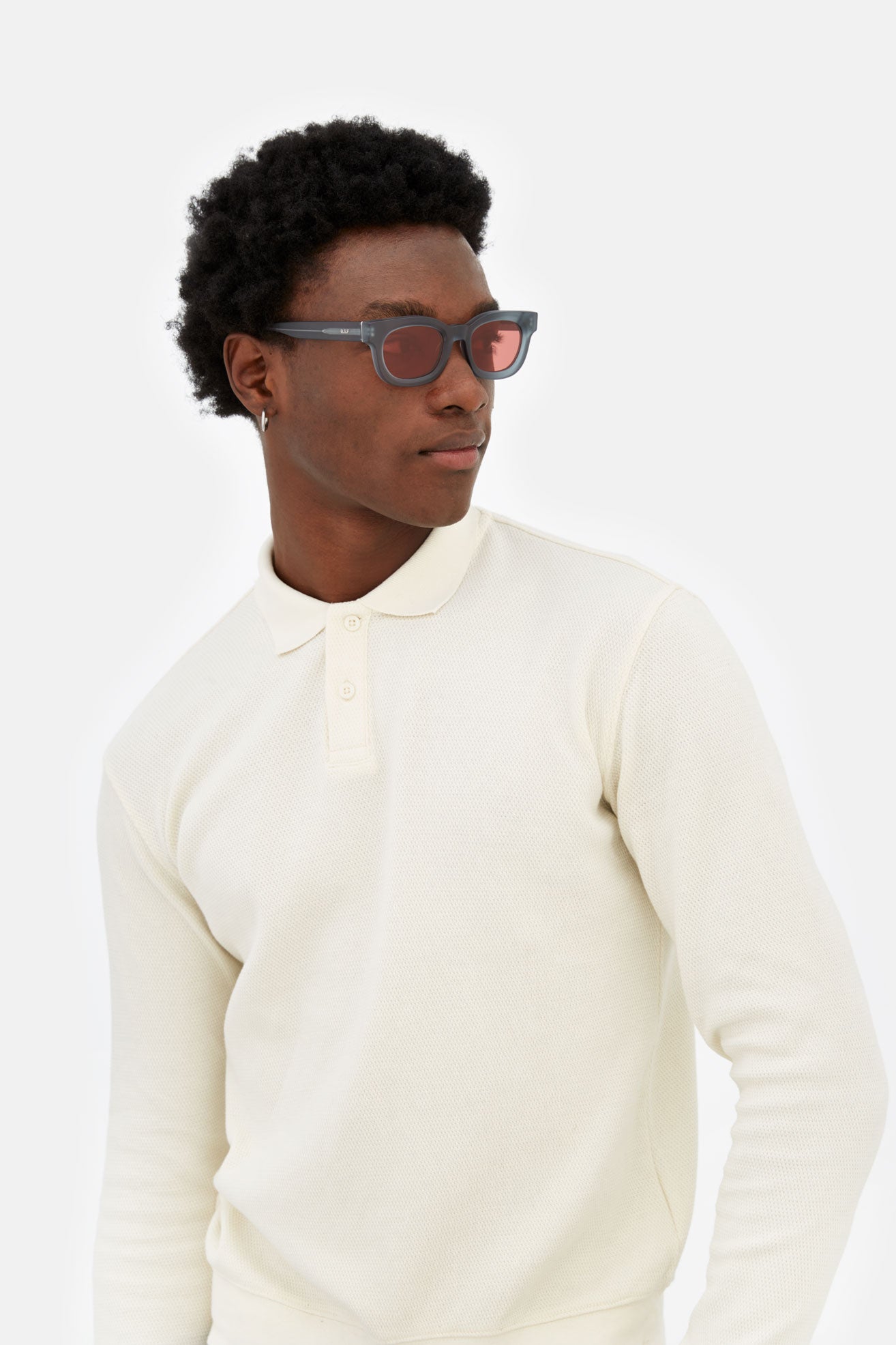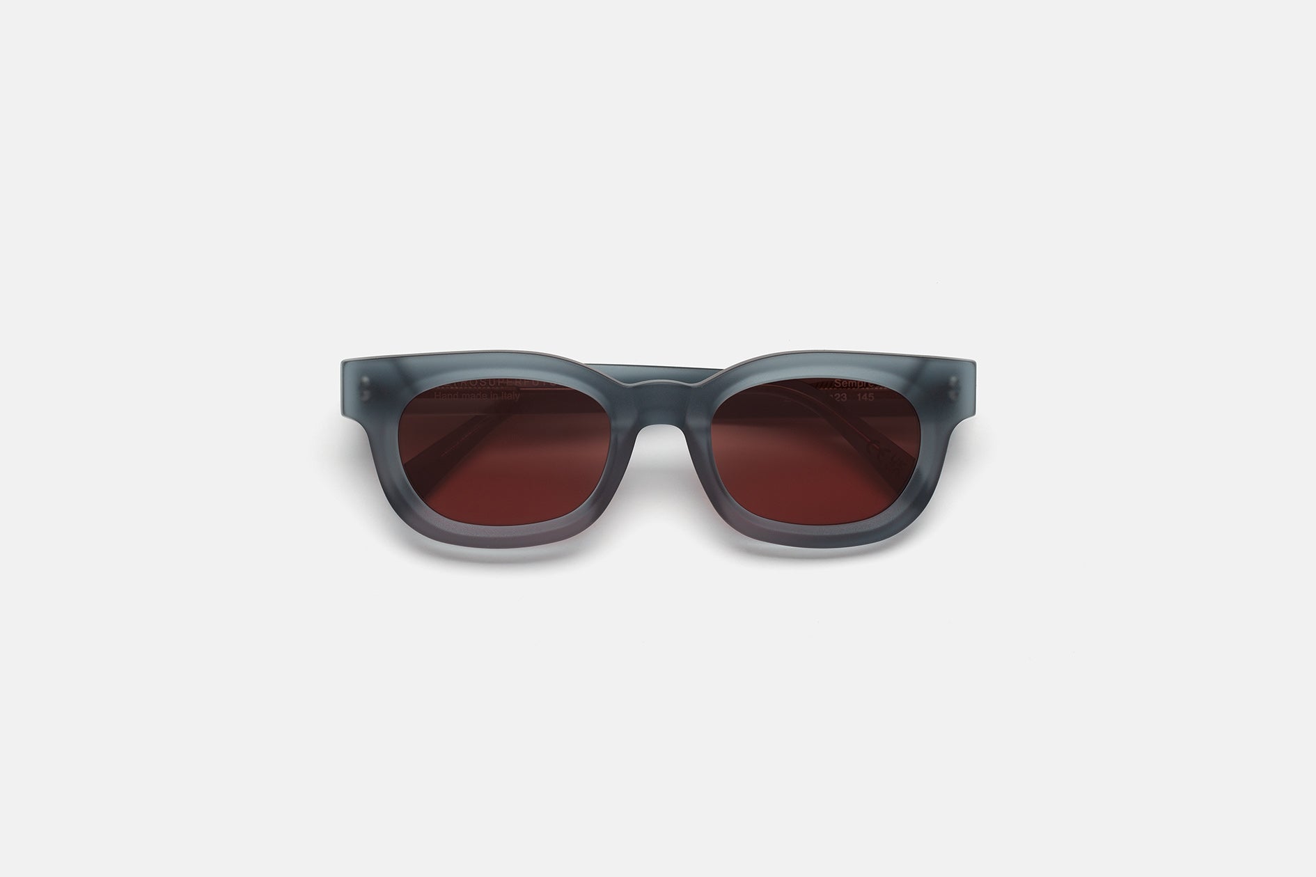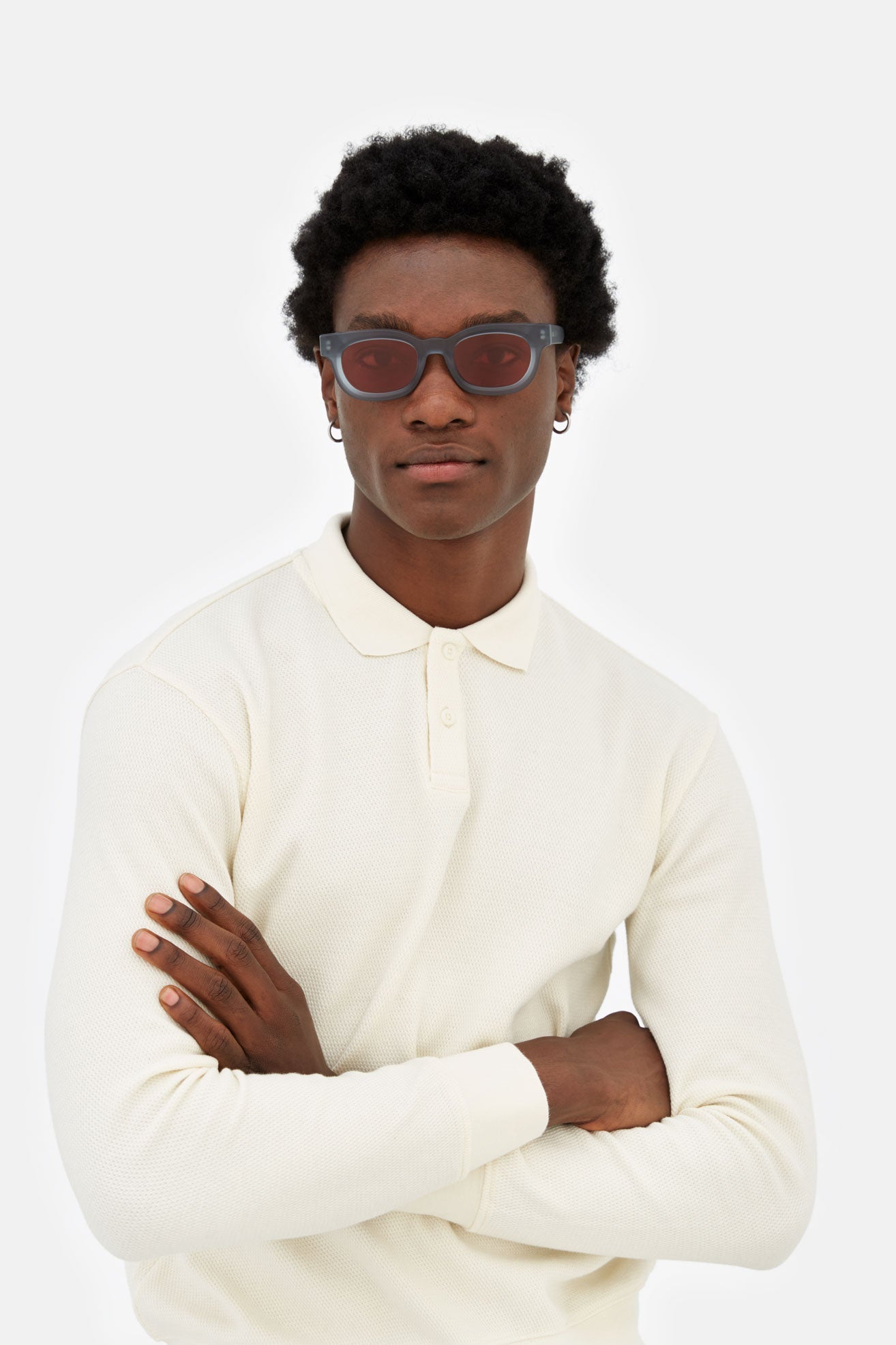 Sempre es una silueta esencial y cotidiana diseñada como un clásico atemporal. Una reinterpretación de las formas de los años 60, Sempre destaca por sus molduras suavemente talladas con esa profundidad adicional alrededor de las lentes, dando a la pieza una calidad escultórica única. Sus lentes ovaloides tienen una calidad familiar y relajante, mientras que sus patillas cuadradas elevan el diseño con detalles contemporáneos agudos y un enfoque geométrico preciso. Esta versión de Sempre cuenta con un acetato translúcido gris-azul con lentes teñidas de arcilla roja.