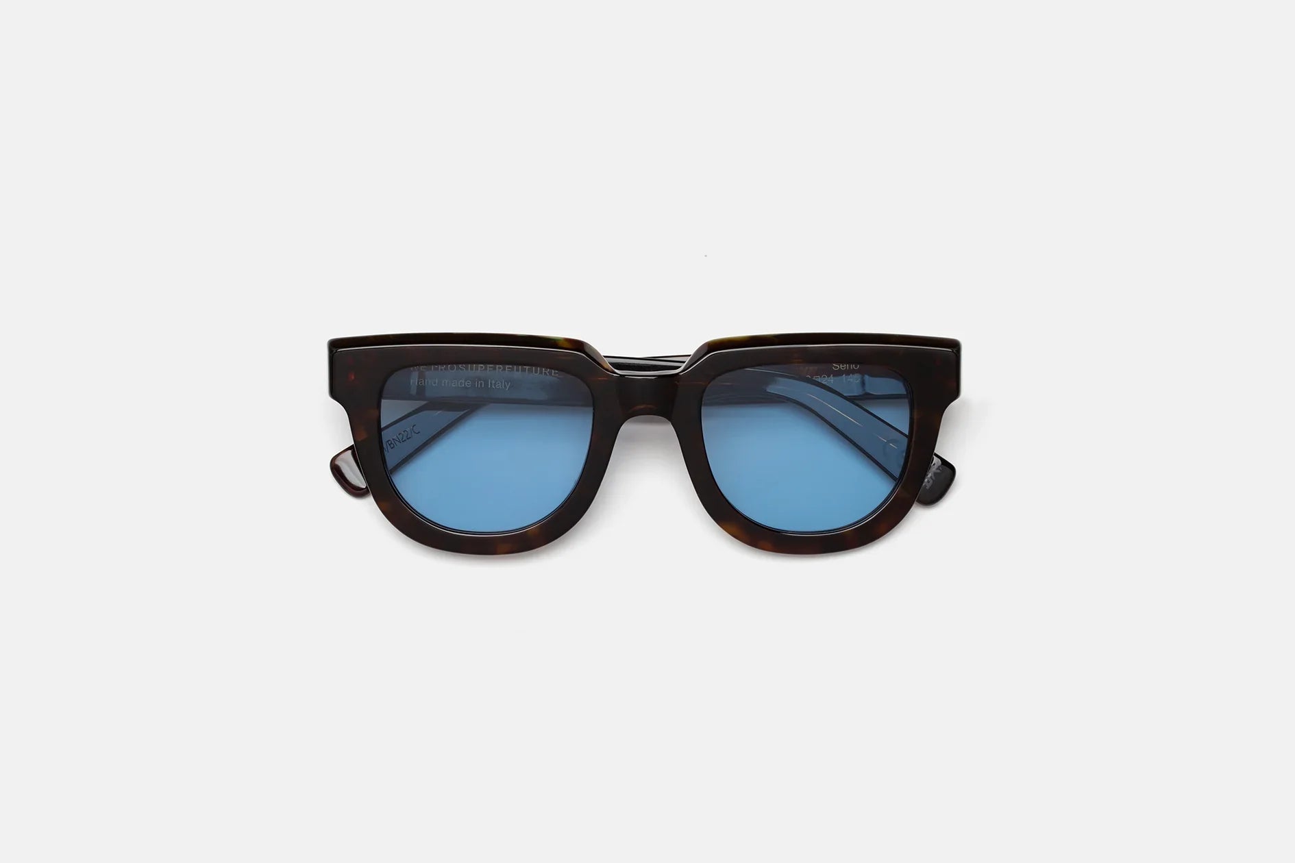 Serio es una silueta imprescindible para el día a día, la expresión de un básico atemporal sin dejar de lado la identidad y el carácter. Con una forma familiar, Serio evoca reconfortantes rasgos vintage, de diferentes épocas, renovados y actualizados para una estética contemporánea. La forma presenta líneas limpias y pulidas y geometrías bien equilibradas como testimonio de la excepcional artesanía del diseño de RSF. Esta versión viene en acetato Habana oscuro con lentes azules llamativos.