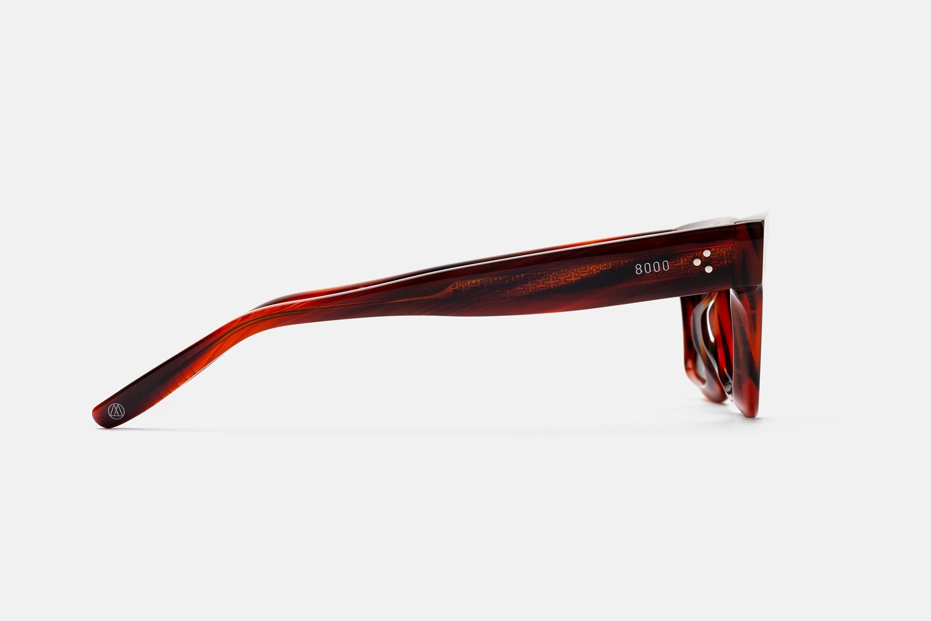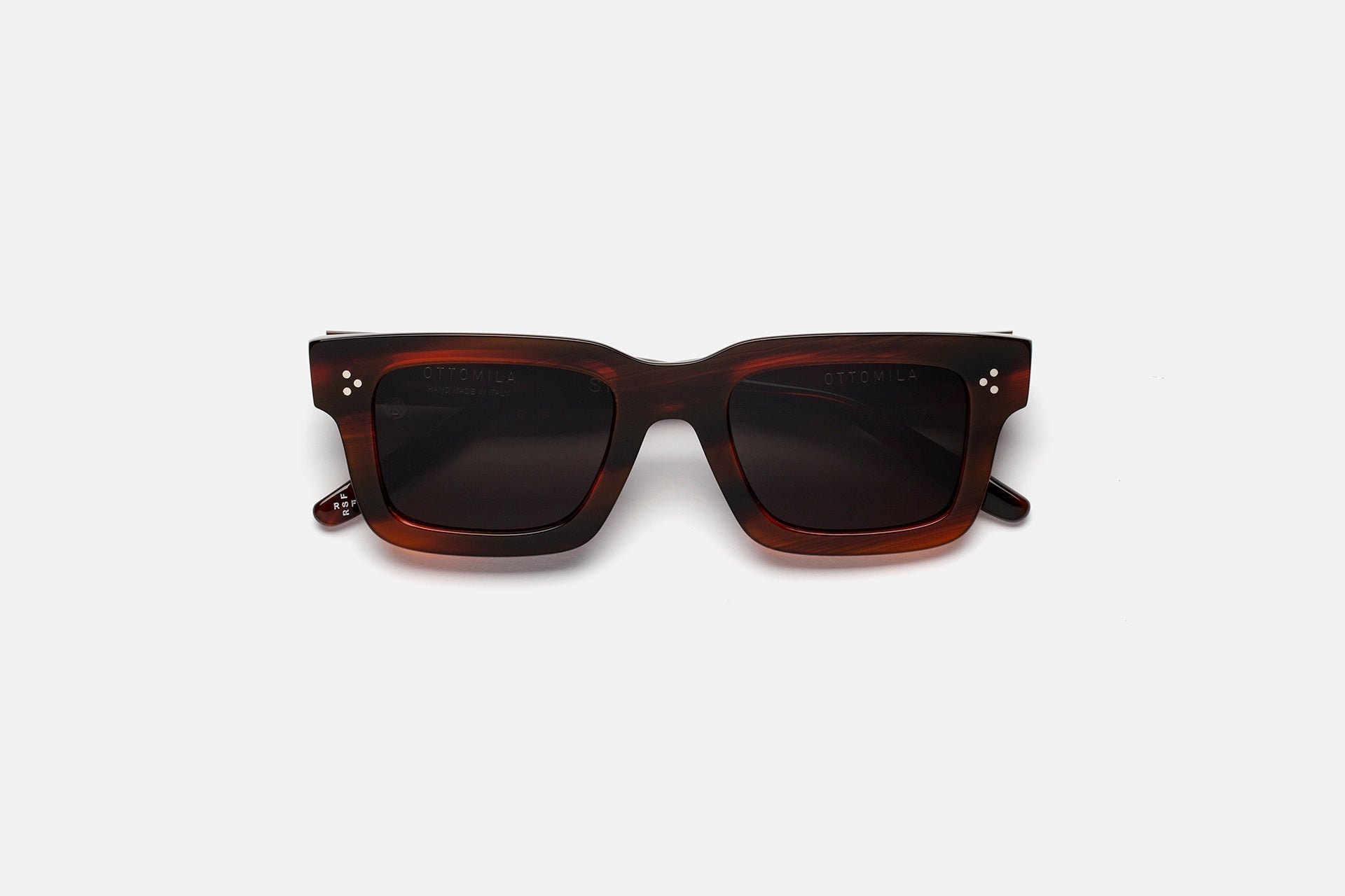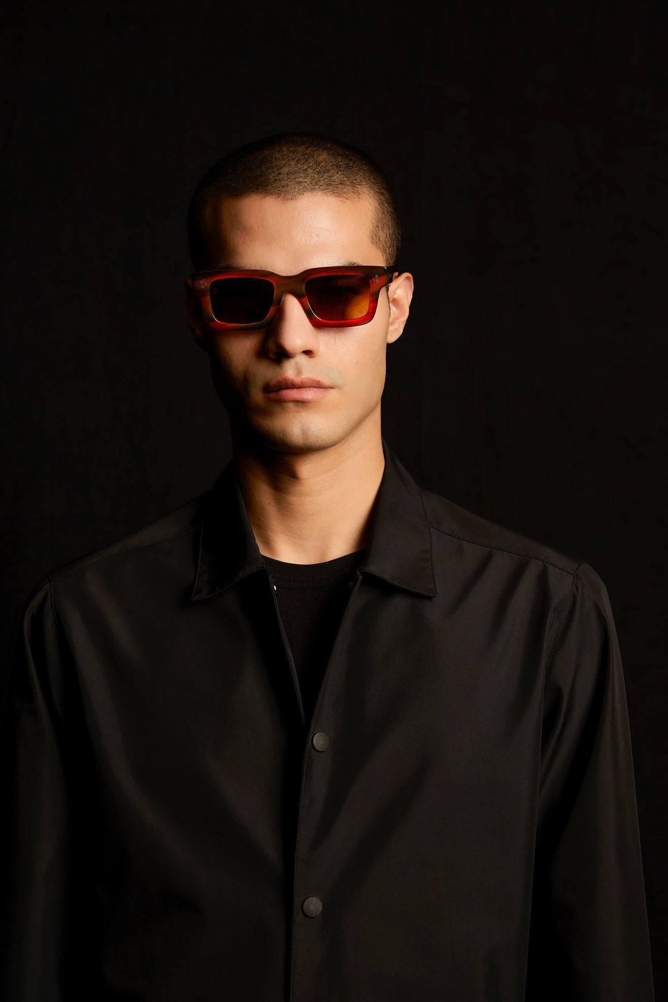 Una pieza atemporal de gafas creada para la marca italoamericana de alta gama Ottomila, Stinger es una silueta geométrica esencial caracterizada por una construcción de acetato gruesa y resistente. Inspirado en el cine negro italiano de los años 50, el modelo desprende una energía misteriosa, con sus patillas salientes y sus líneas afiladas. Los aros han sido cuidadosamente tallados en los laterales, lo que pone de manifiesto la meticulosa y obsesiva atención al detalle que caracteriza a los productos de Ottomila. Este modelo se presenta con un acetato habano a rayas y lentes ahumadas volcánicas.