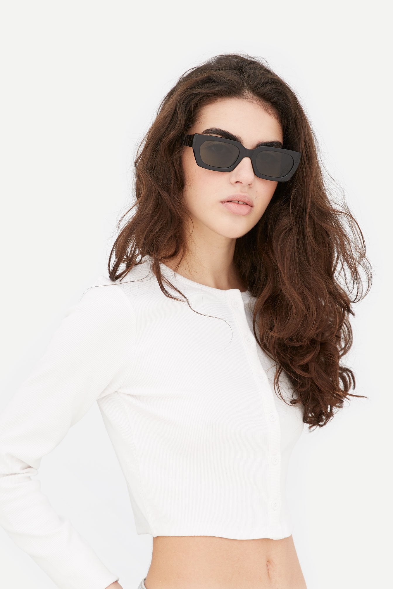 Diseñada para la colección Primavera/Verano 2021, Teddy es una silueta con un corte limpio y afilado. Una determinada montura ancha con una construcción de acetato gruesa y atrevida, que combina el estilo con la funcionalidad. Este modelo viene con acetato negro y lentes negras.