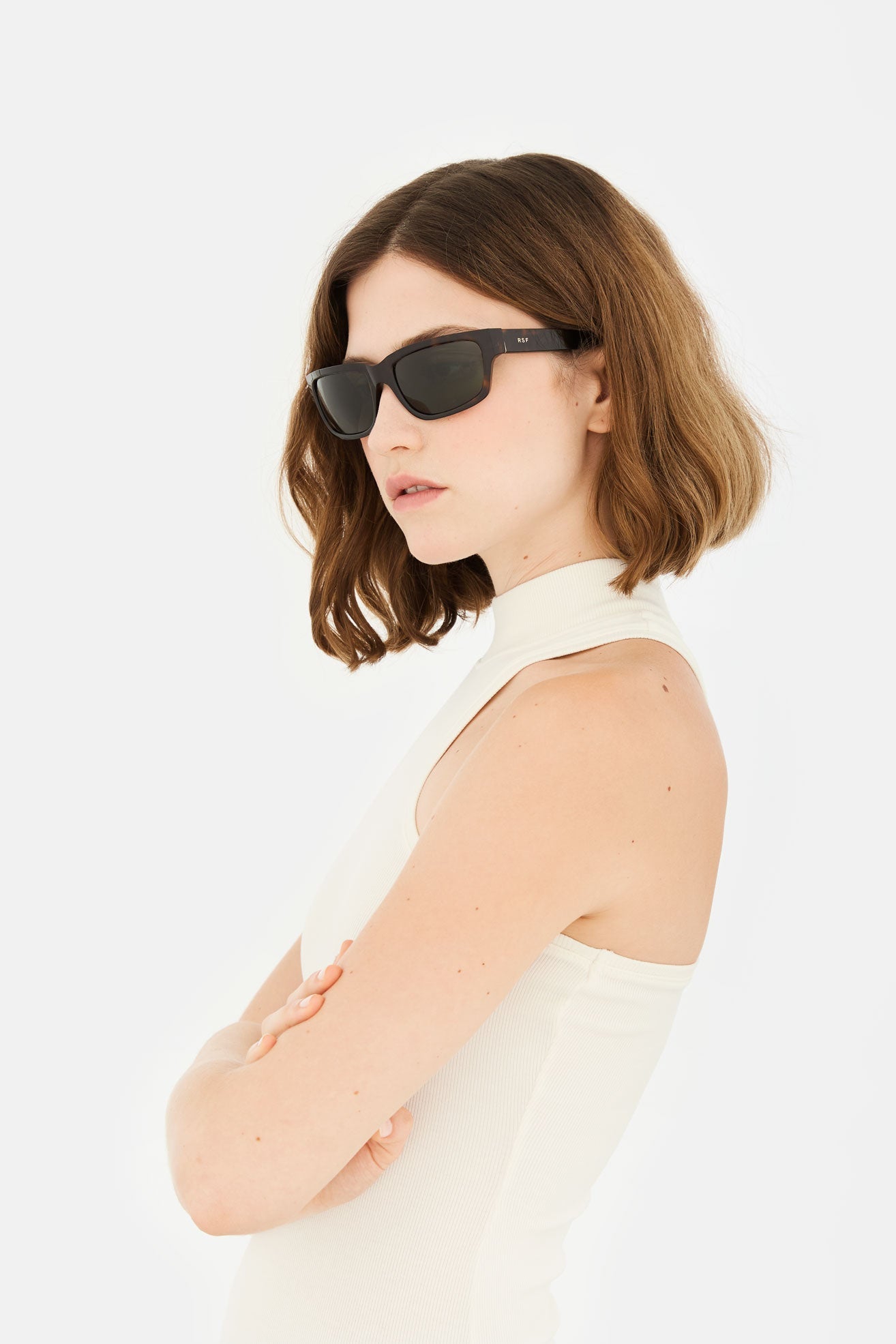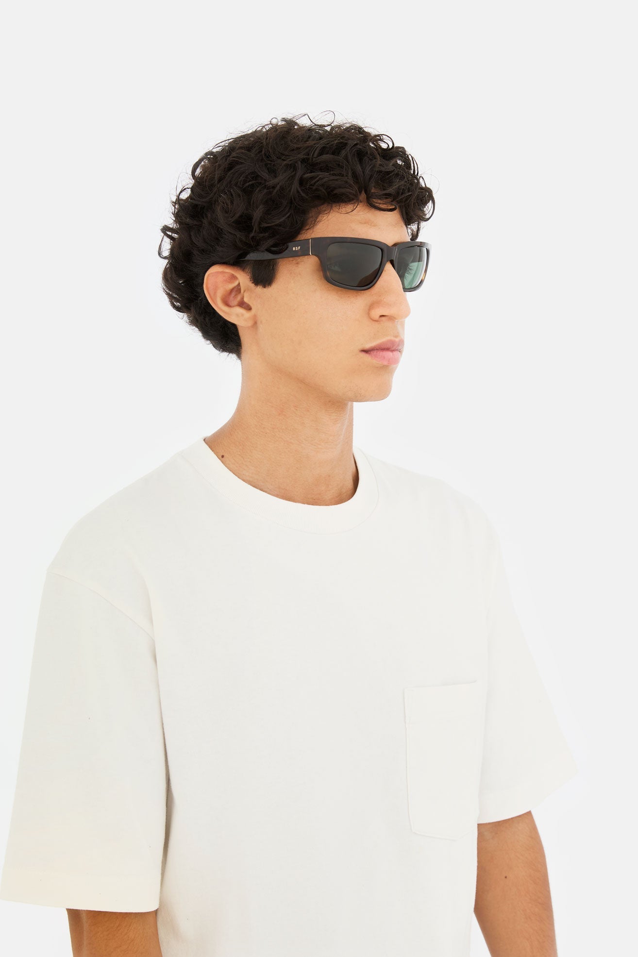 Thelonius estira una montura clásica de acetato en una historia semi envolvente con influencia deportiva. Con su característica construcción de acetato resistente RSF, esta montura se cruza en múltiples usos y funciones con lenguajes técnicos, clásicos y callejeros. Esta versión del Thelonius viene en un rico y elegante acetato de tortuga oscuro combinado con lentes verdes clásicas. Hecho a mano en Italia.