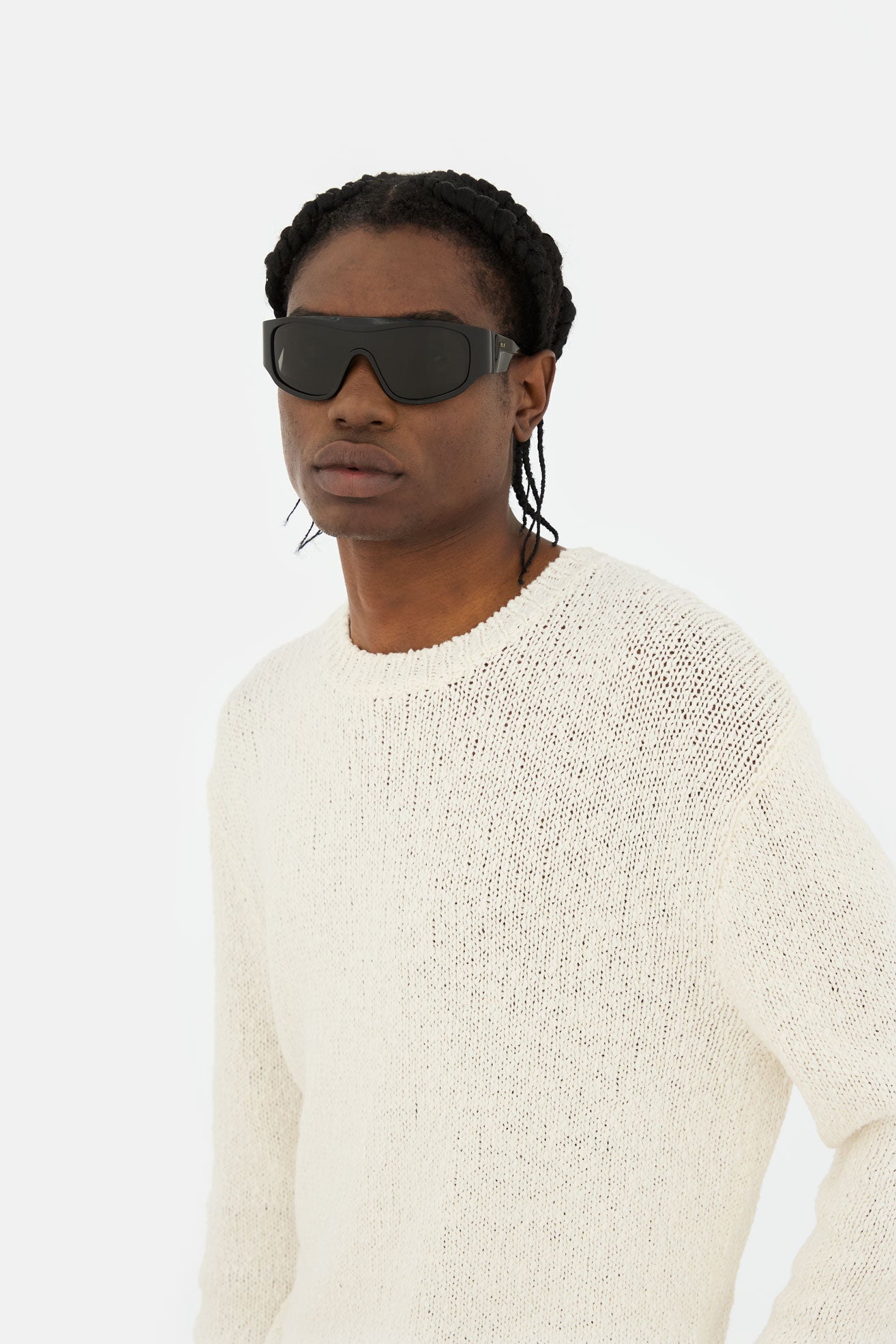 Acetato italiano de alta calidad en un acetato negro atemporal. Montaje sobre escudo Zeiss extra negro en base 4. Gafas premium hechas a mano en Italia.