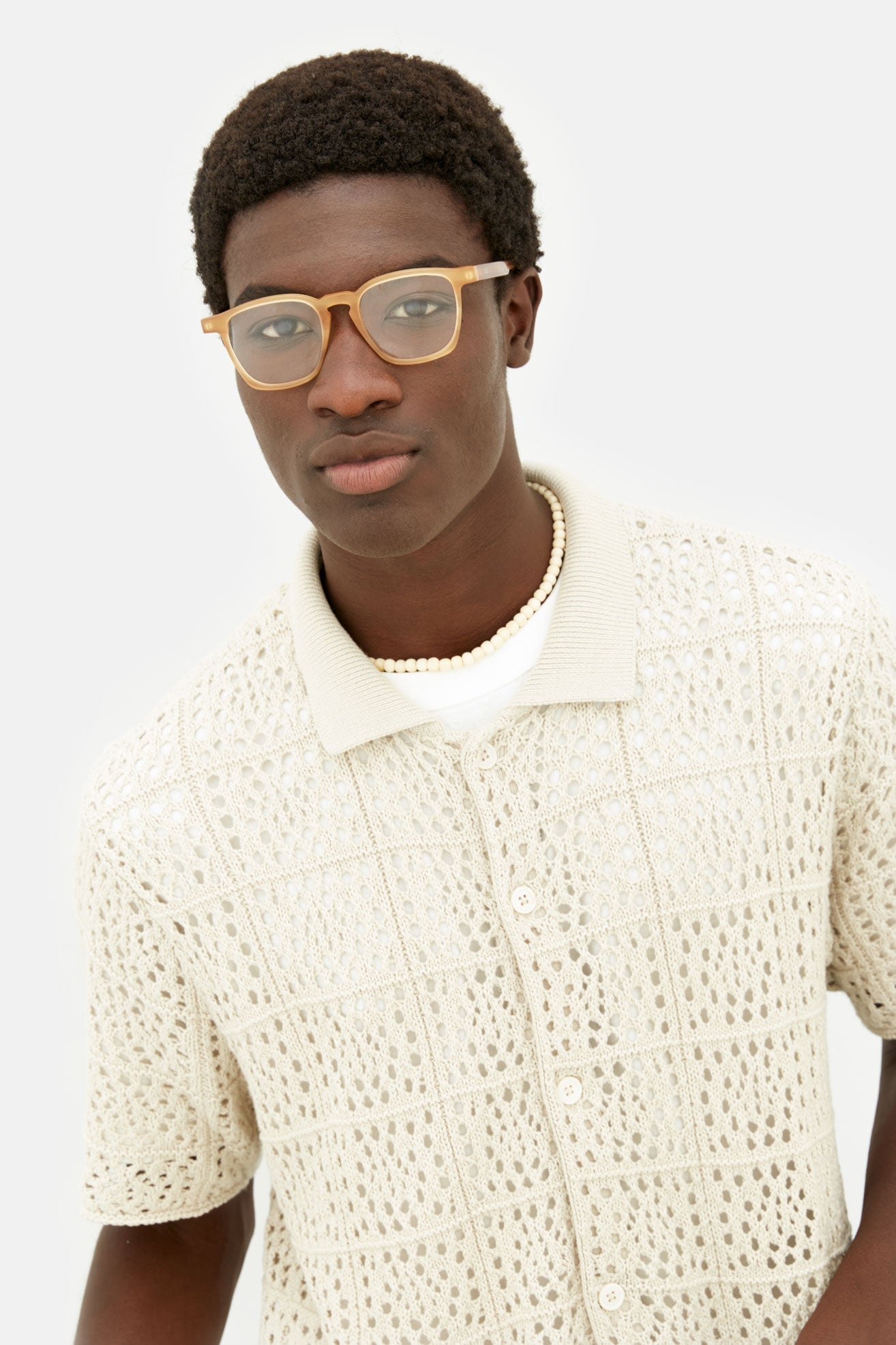 Una forma célebre de RSF, esta versión óptica de la Unico es una silueta atemporal diseñada para ser ligera y esencial sin perder carácter. Unico captura la esencia del diseño de RSF: una reinterpretación de modelos familiares y cómodos con detalles que resaltan un distintivo urbano e icónico. Sus lentes ligeramente sobredimensionadas presentan bordes curvados en la línea superior, con ángulos agudos y cuadrados en la parte inferior y las patillas, recordando las formas clásicas vintage con un toque contemporáneo. Esta versión se presenta en acetato ocre claro.