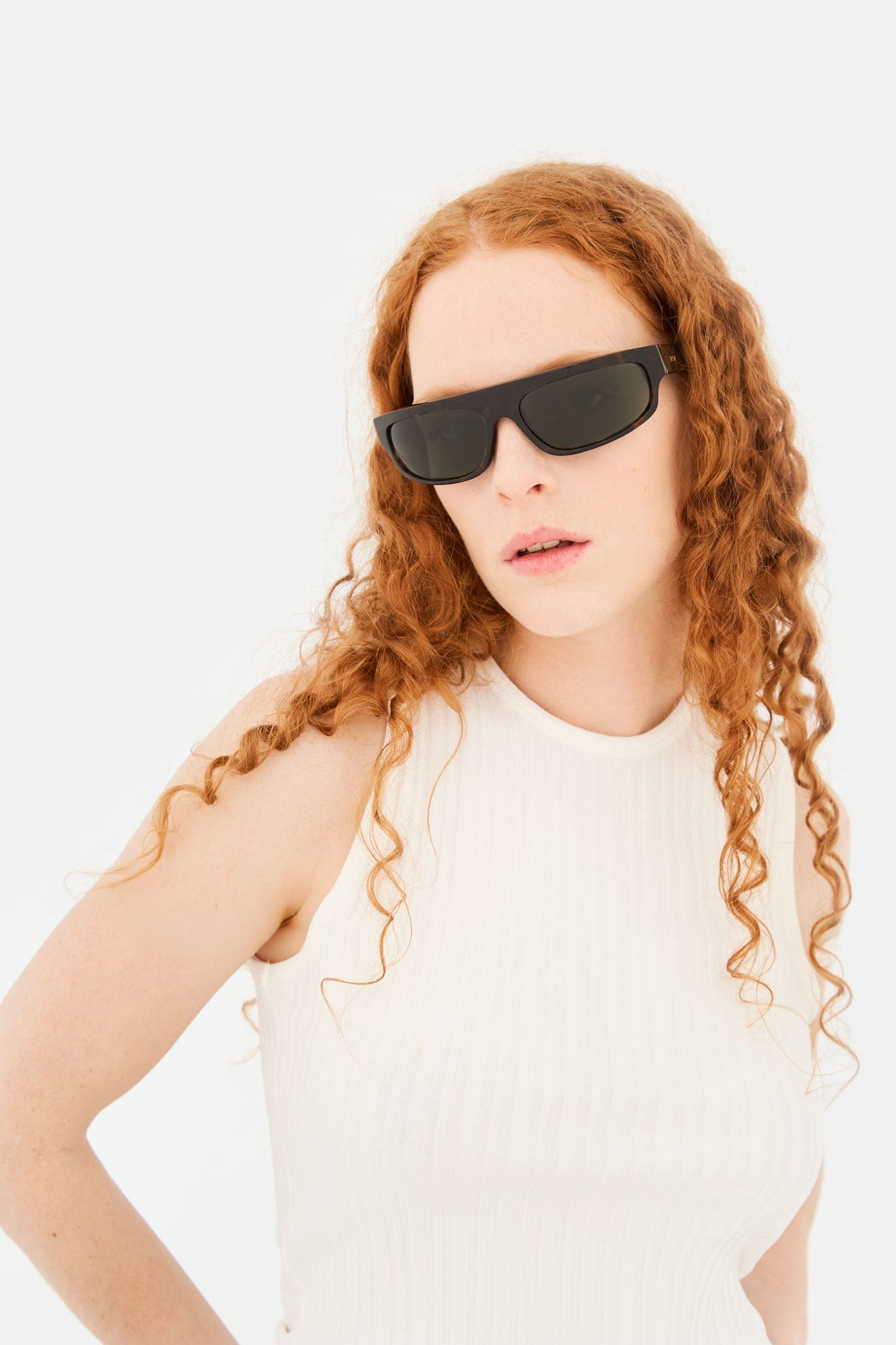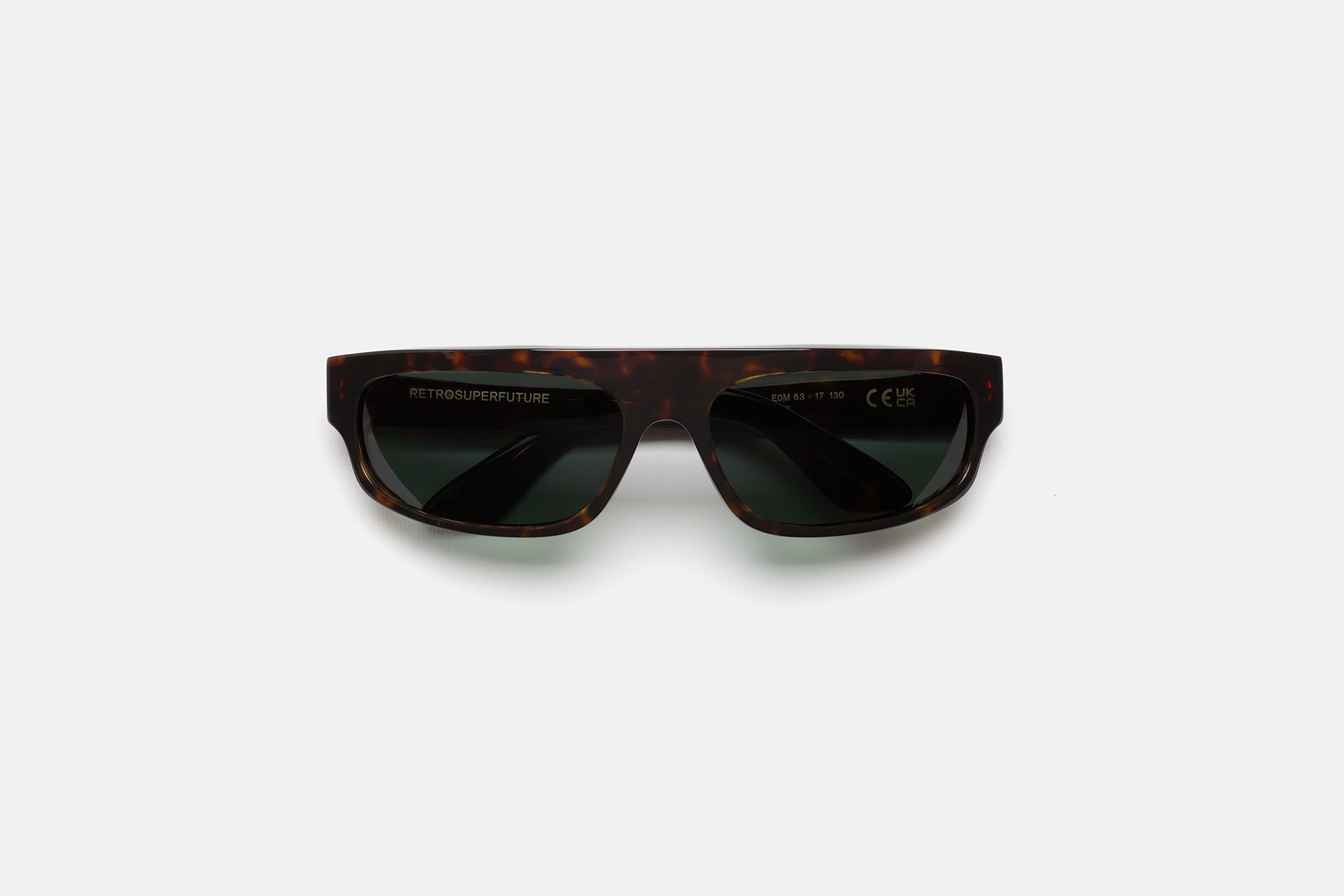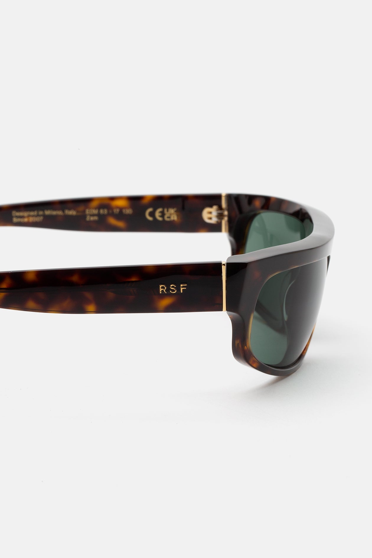 Acetato italiano de alta calidad en un intenso y oscuro color habana. Elegantes lentes verde botella Zeiss de base 8. Gafas de alta gama hechas a mano en Italia.