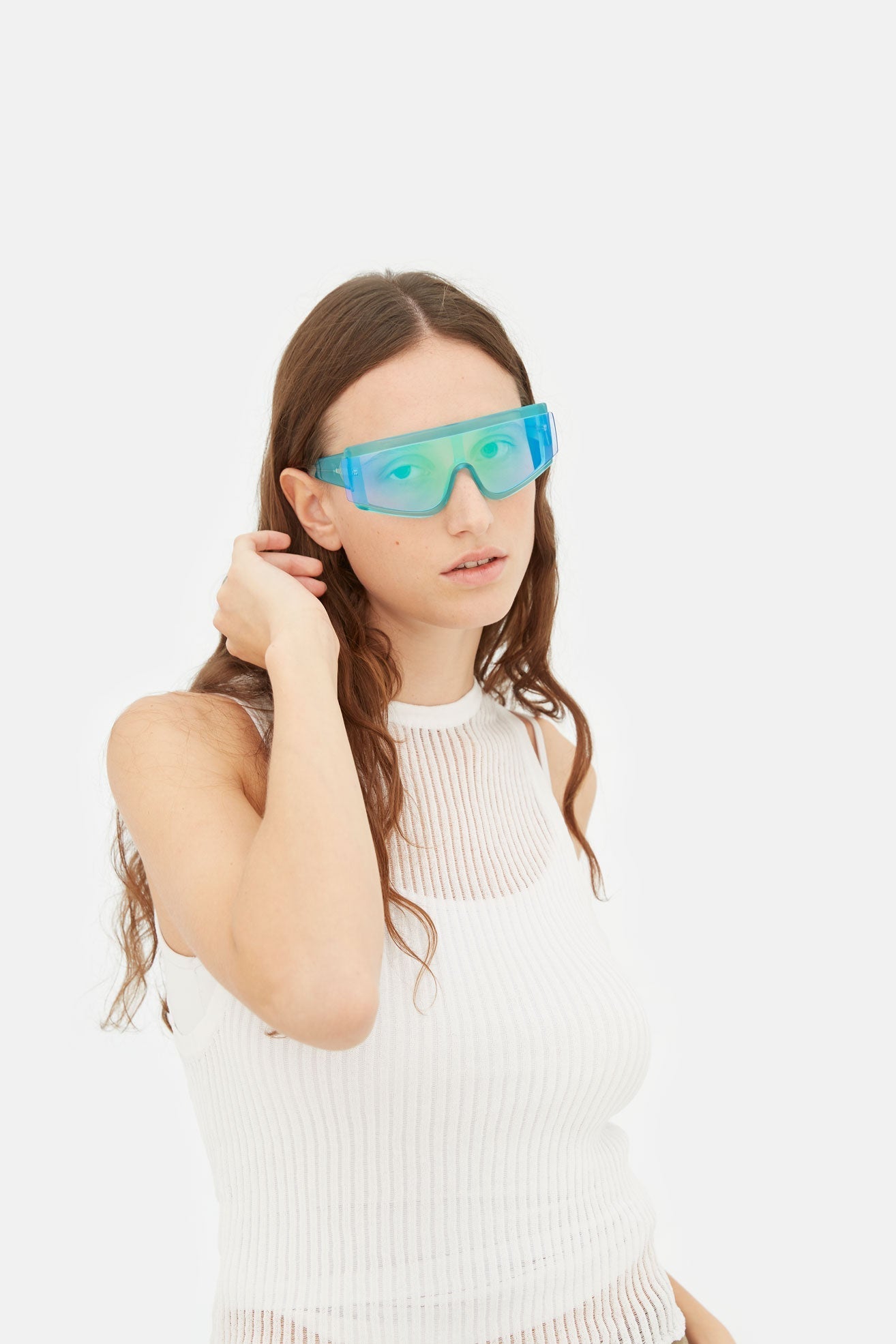 ZED es una silueta fluida, rápida y con visión de futuro que se sitúa en la intersección del estilo de vida urbano y la ropa deportiva de alta tecnología. Concebido como uno de los primeros escudos de RSF a mediados de la década de 2010, ZED se ha actualizado con una nueva y afilada identidad. Caracterizada por una gruesa construcción de acetato, cuya estructura artesanal revela tanto suaves esquinas redondeadas como ángulos precisos, abraza la lente única firmemente en su lugar. Un detalle nítido: la lente geométrica extendida en el exterior de la montura frontal. Esta versión se presenta en un fresco acetato turquesa cristalino con lentes verdes espejadas a juego.